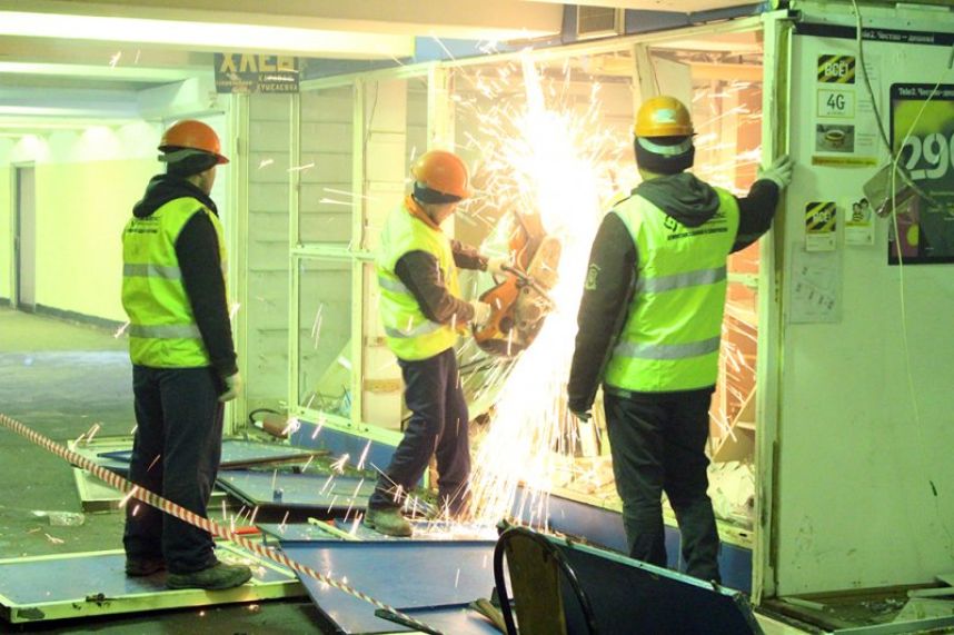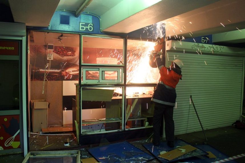 Как сообщает пресс-служба Центра повышения эффективности использования государственного имущества, конструкции распилили, разобрали внутренние перегородки торговых зон. Всего незаконная торговля занимает около 400 кв.м. Работы продлятся еще неделю.