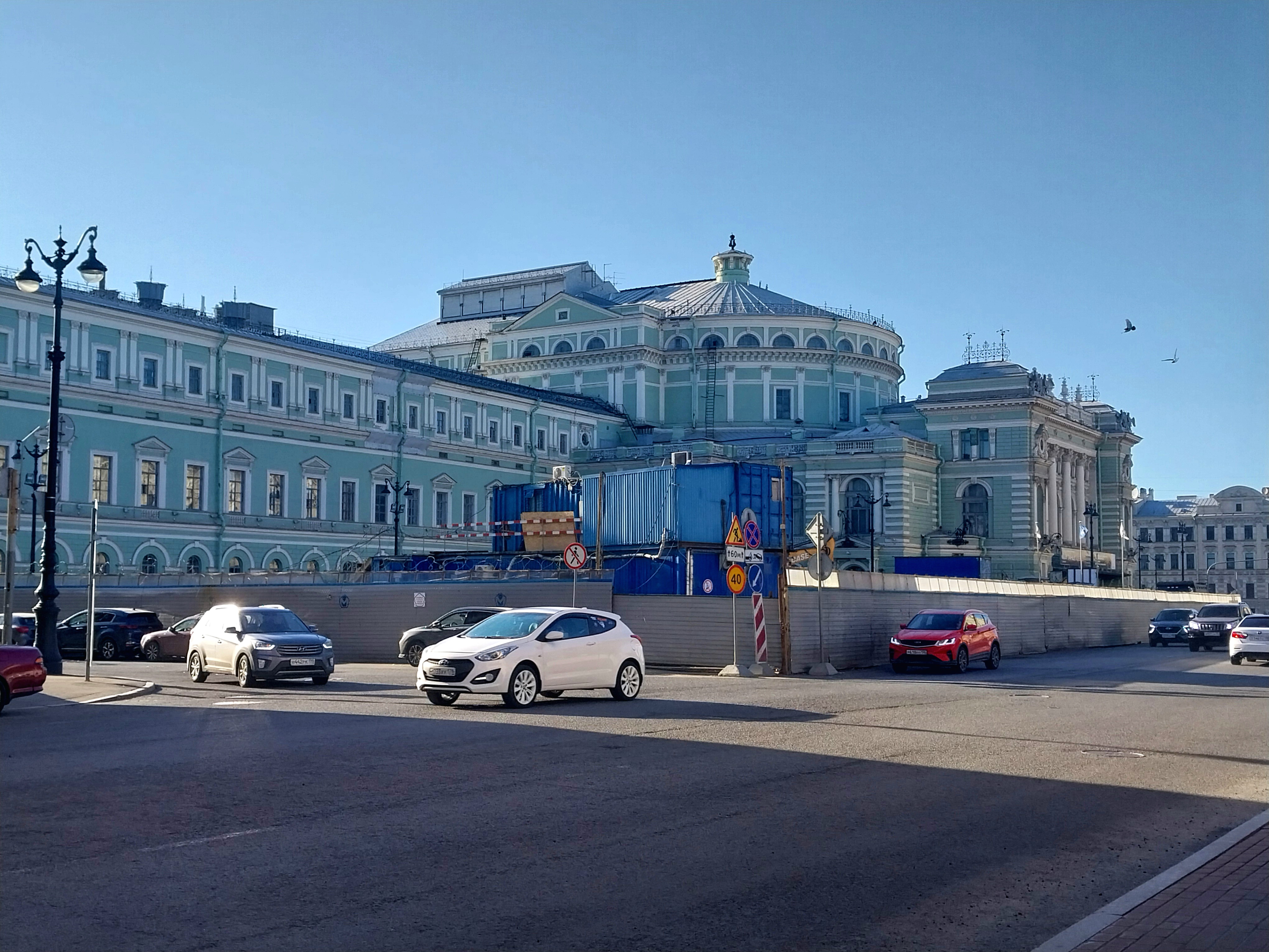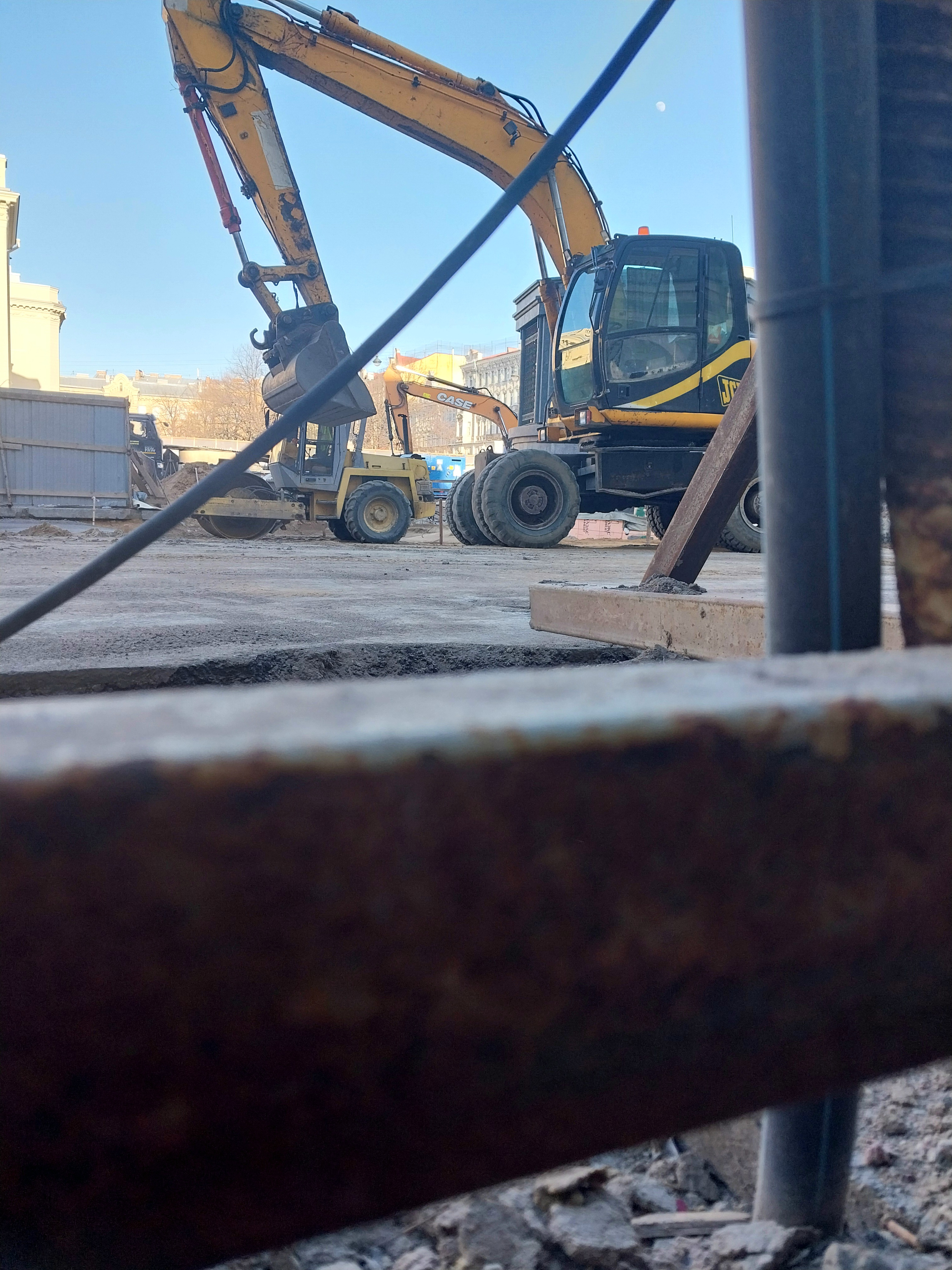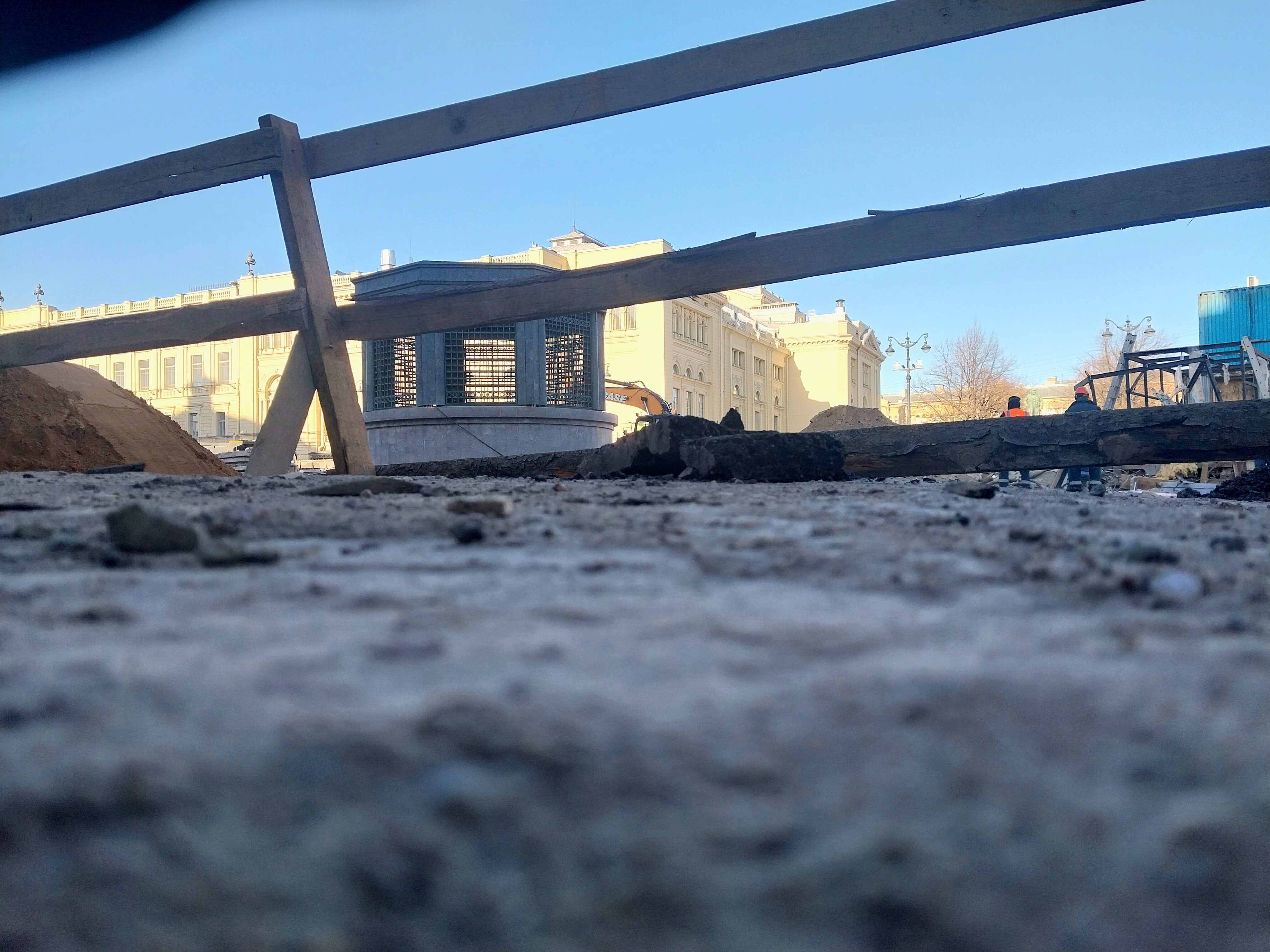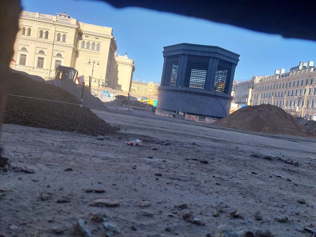 Что касается работ, на территории стройплощадки работают экскаваторы и самосвалы, видимо благоустройство начали делать.
