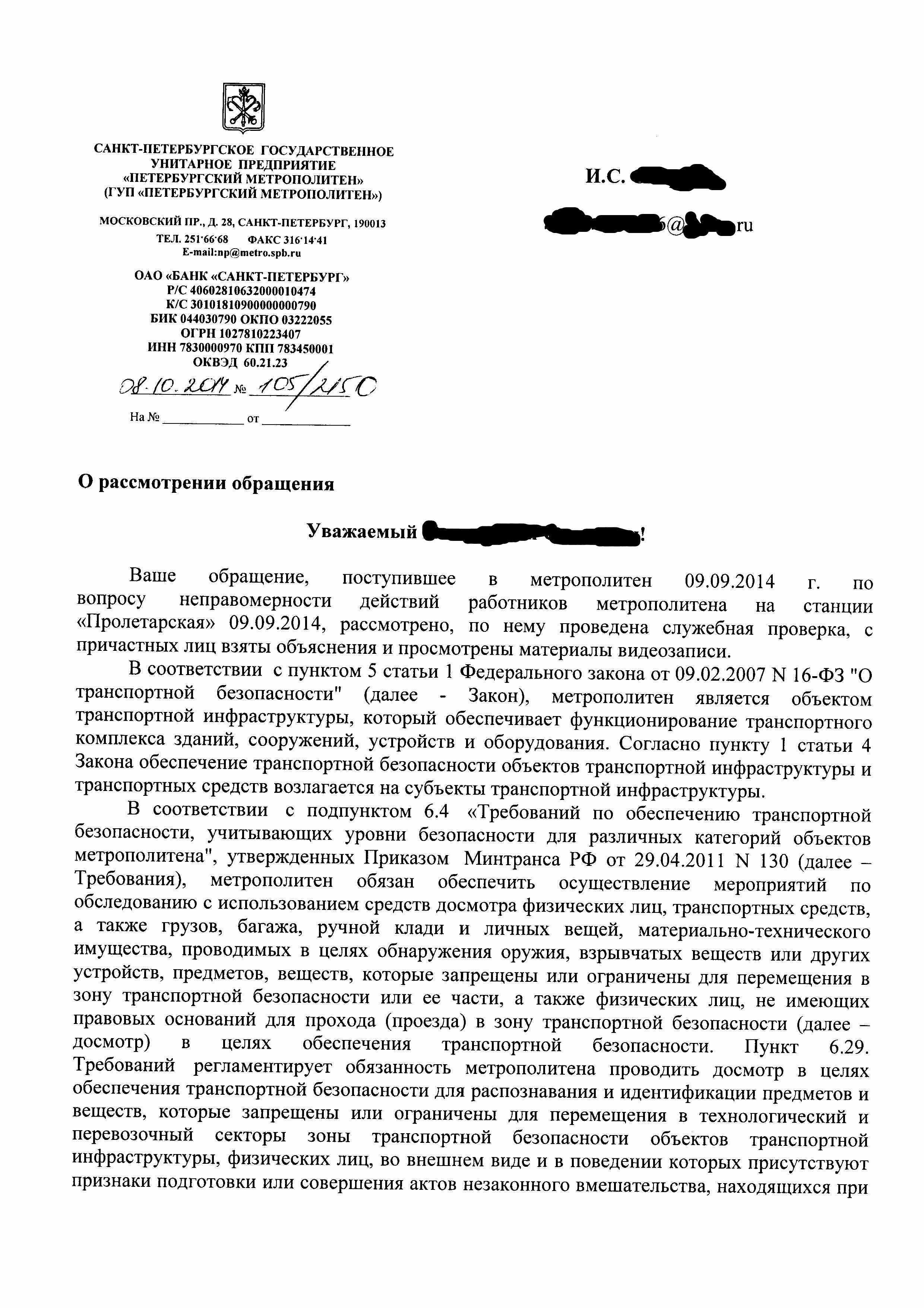 2. сразу чирикать жалобу в комитет по транспорту (жалоба через сайтец метро оставлена без ответа)