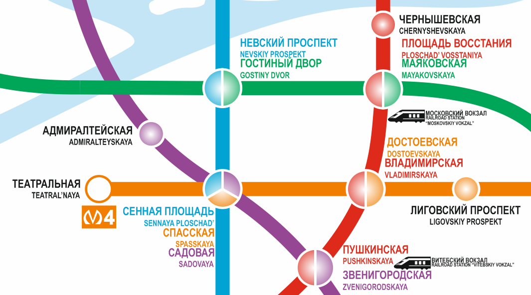 Только, на мой взгляд, названия пересадочных станций "Маяковская" - "Площадь Восстания", "Гостиный двор" - "Невский проспект" следует расположить друг под другом (по аналогии ОК-1,2 и других). Ну и "Сенную площадь" также к "Спасской" и "Садовой".