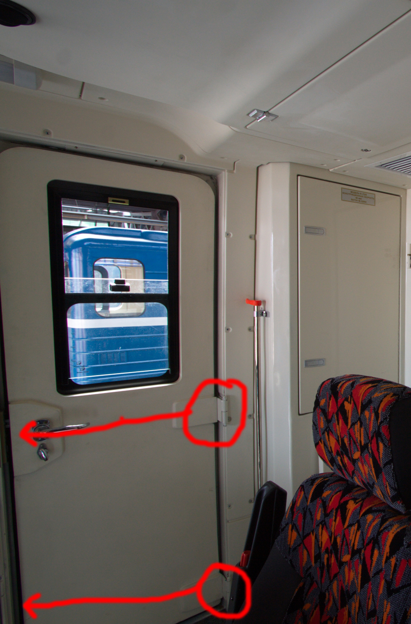 2) Во всех петербургских и ленинградских вагонах метро двери в кабину машиниста открывались внутрь. Профессионалы пресс-службы на самом деле имели в виду смену расположения петель на дверях. Сейчас на всех ранее выпущенных Юбилейных петли стоят ближе к аппаратной перегородке, что вкупе с бочкообразным полотном двери усложняет проход людей.