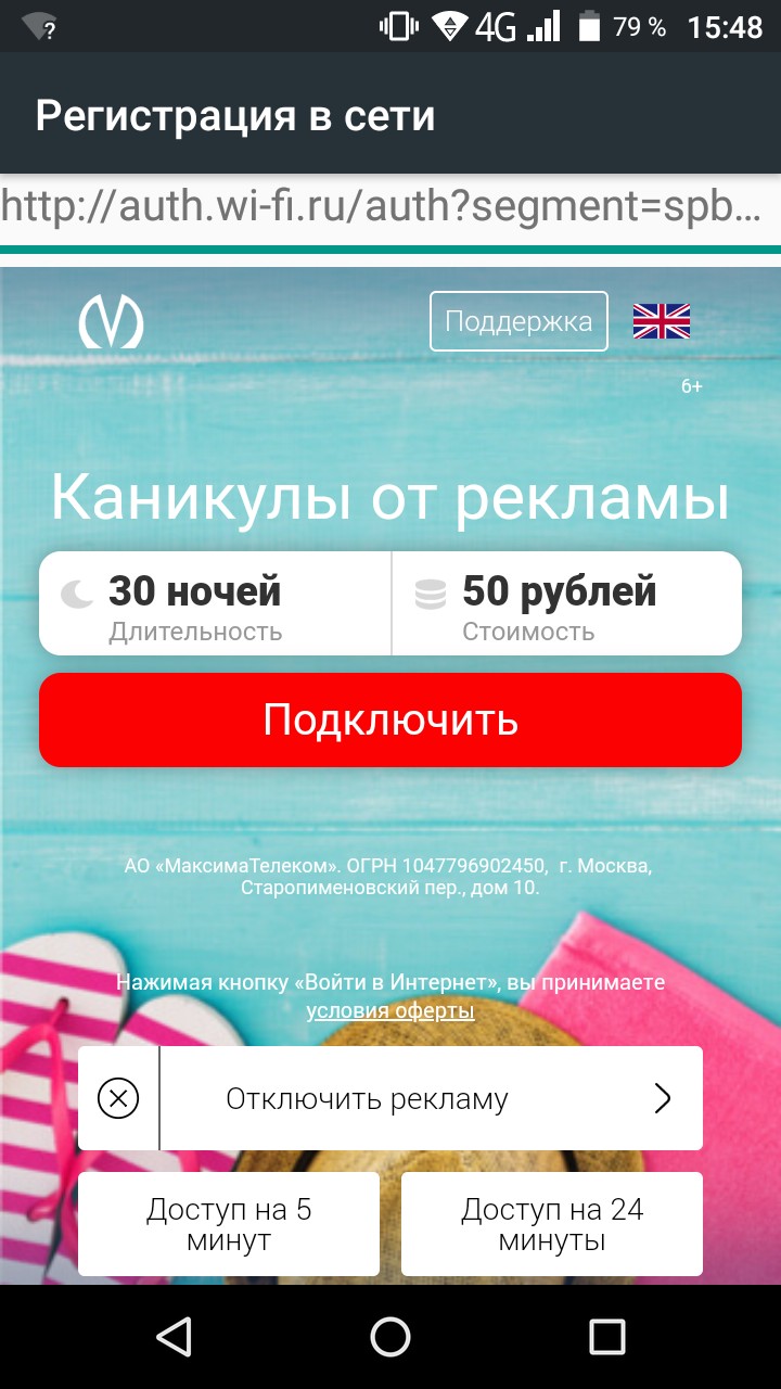 Ну а 5-минутный вариант доступа в интернет - вообще выглядит издёвкой, тем более с такой кучей рекламы, имхо...