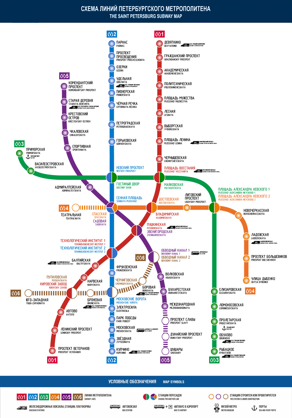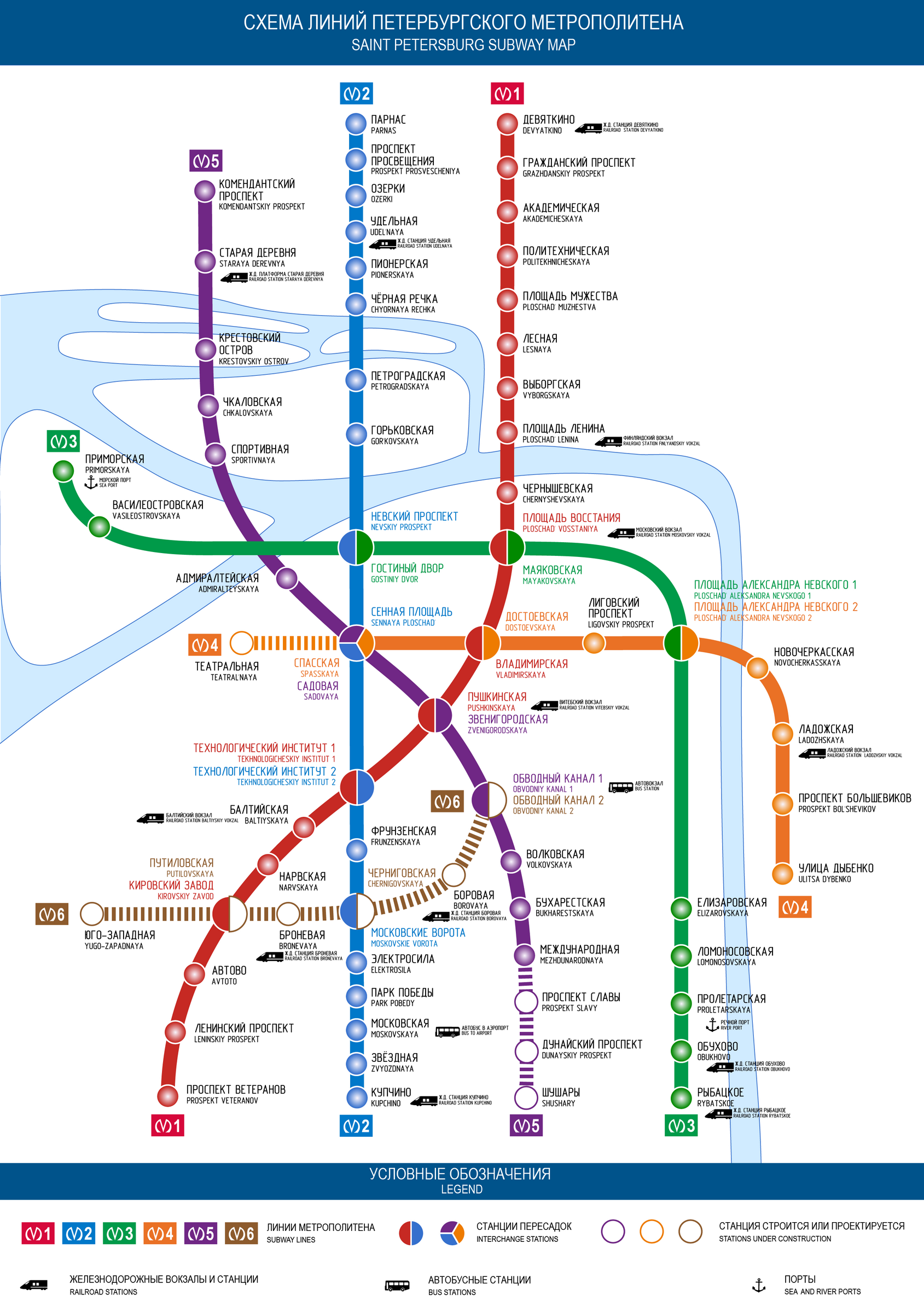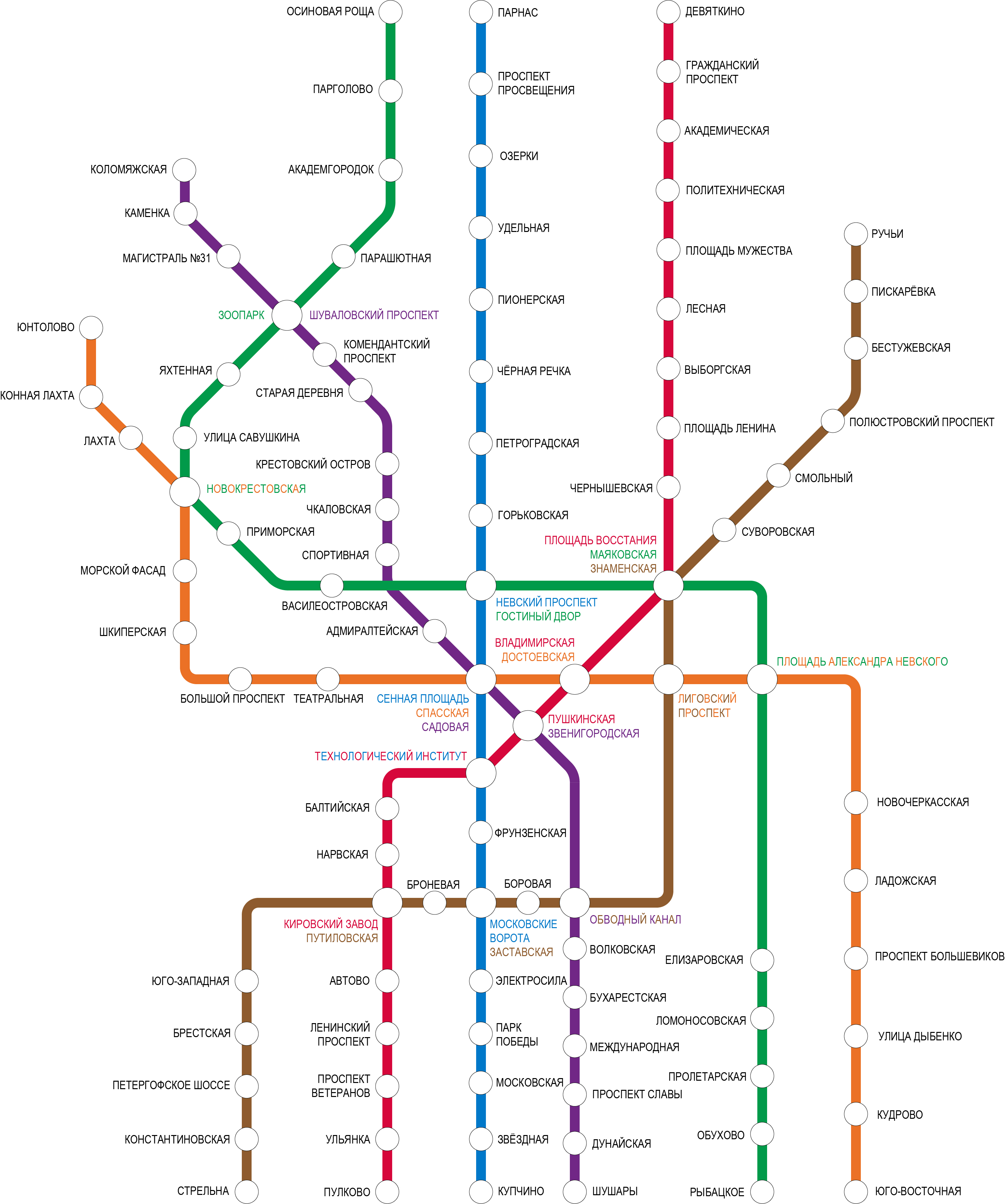 5. Все дополнительные объекты (ж/д станции, вокзалы, автовокзал, порты, пр.) должны также находиться строго под названиями станций ("Звенигородскую" наверх, "Пушкинскую" ниже, аналогично поступить с "Площадью Восстания"). В качестве исключения можно оставить морской порт, т.к. он не находится непосредственно у станции.