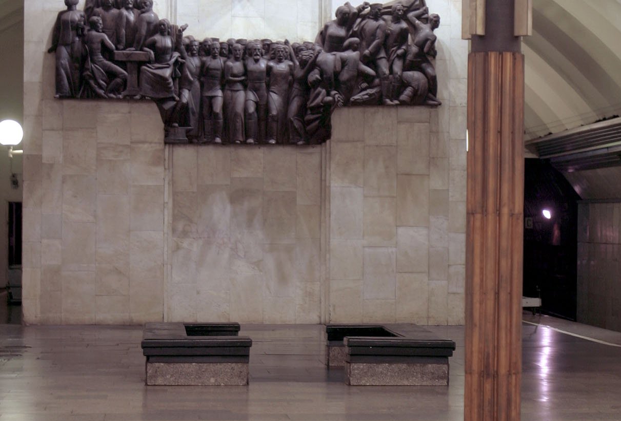 Разгребая хлам на своём ПК обнаружил одну интересную фотографию. На станции не только присутствует "утерянный в процессе эксплуатации" торшер, но и скамейки стоят у стены, где сейчас парковка пылесосов и прочего хлама. Но интересно даже не это, а, похоже, третий тип светильников, освещающих платформы в дальнем конце зала. Но, из-за низкого разрешения, точно тип не рассмотреть. Призываются свидетели.