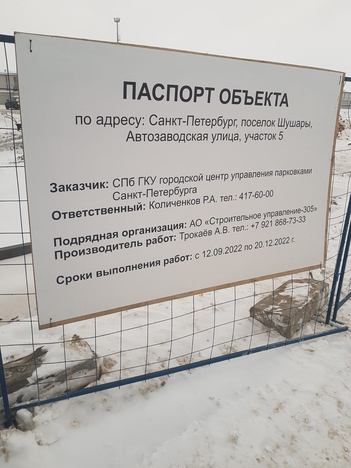 Возведение первой перехватывающей парковки у метро Шушары согласно информационному щиту близится к завершению. По информационному щиту до конца года закончить должны.