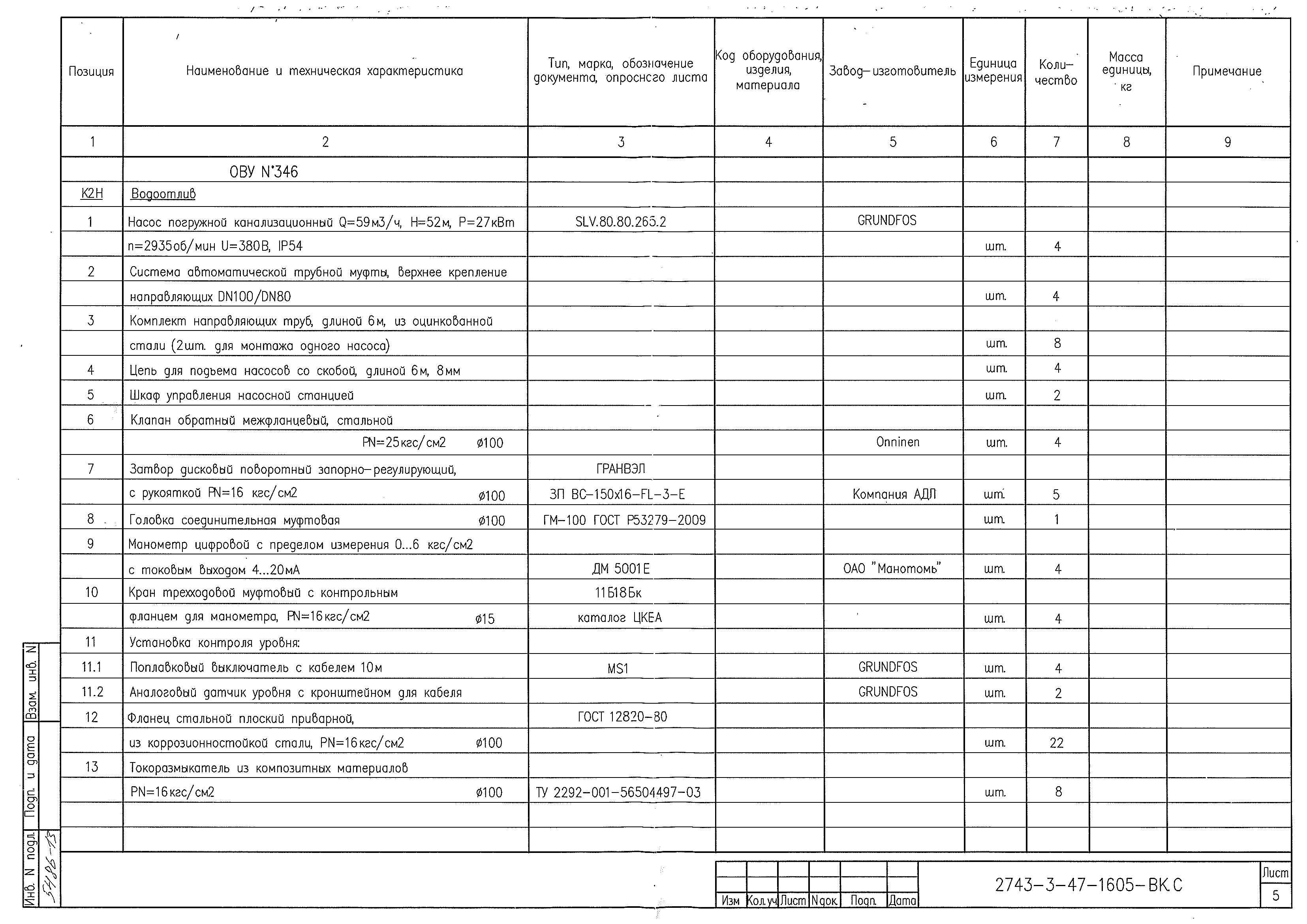 Прям уж не определена. В 346 GRUNDFOS SLV 80.80.265.2, а в 345 GRUNDFOS SEV 80.80.110.2 Недешёвые насосики, но устройство ответственное, а с таким бюджетом стройки это не так и много. Кроме того у Грундфоса в России завод есть. Вполне возможно, что там их и производят и под импортозамещение эти насосы не попадают, поскольку местного производства.