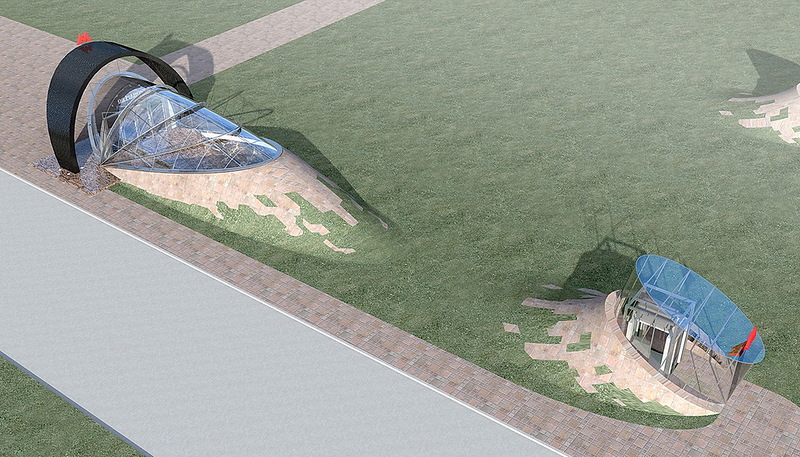 Также, лучше смотрелись стеклянные входы/выходы: