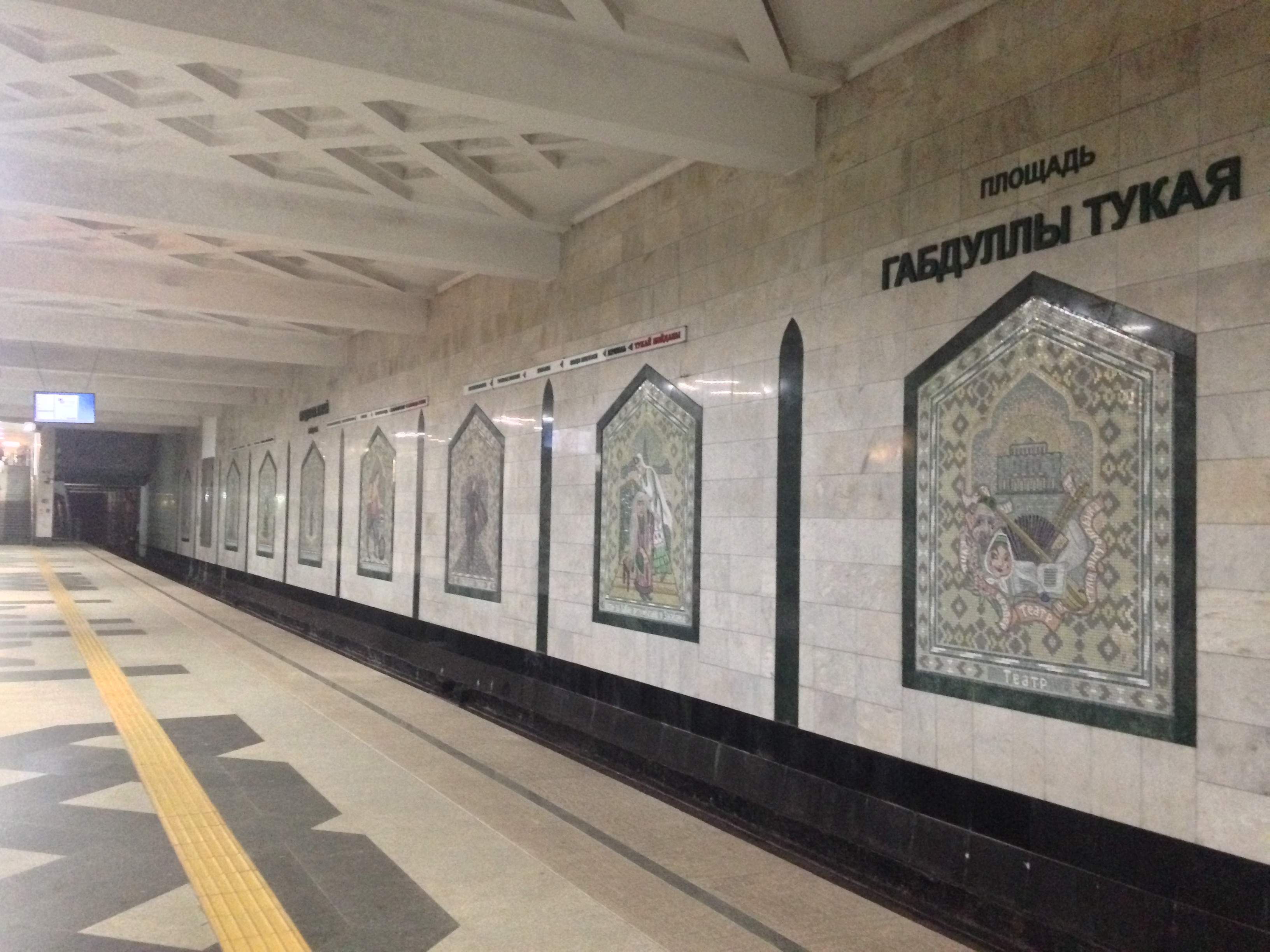 Площадь Габдуллы Тукая. Чуть-чуть бы больше качественного освещения - и я бы не поленился переснять все сюжеты на путевой стене.)