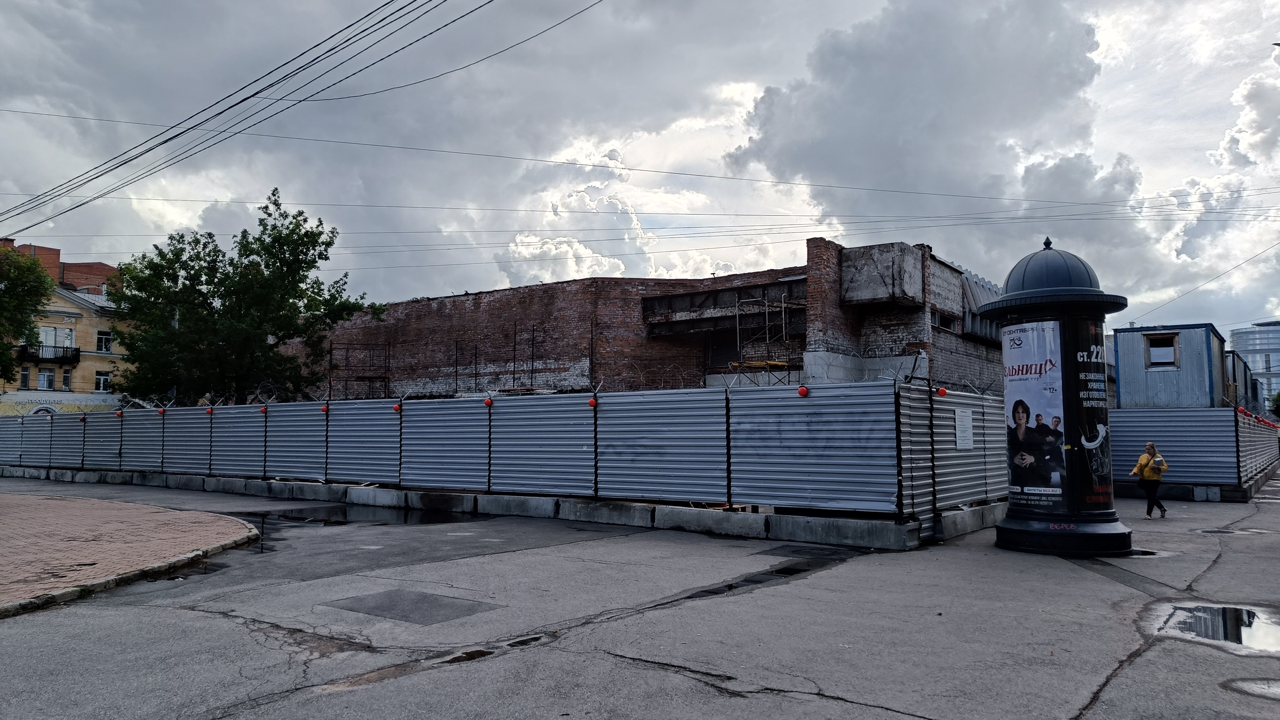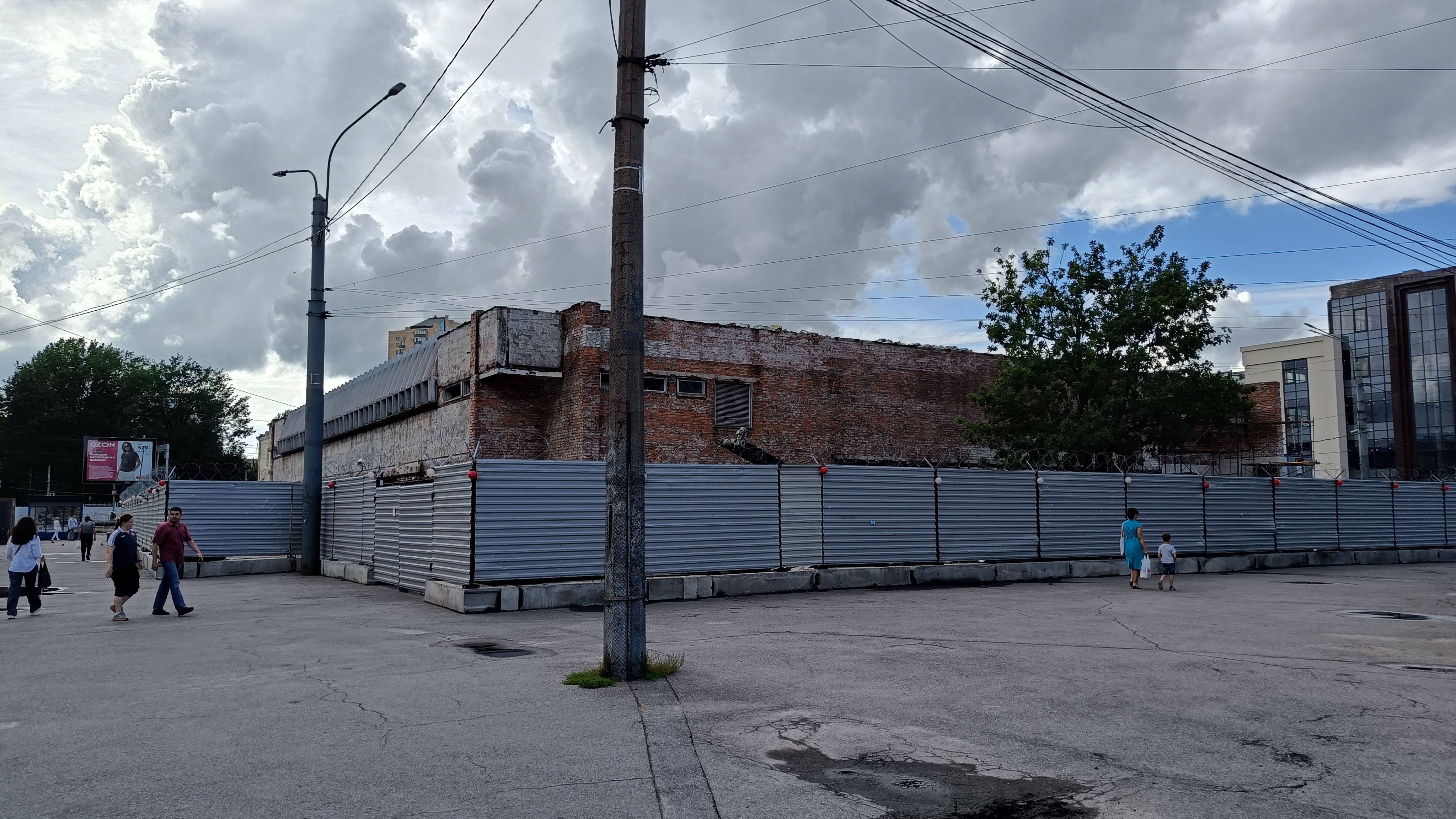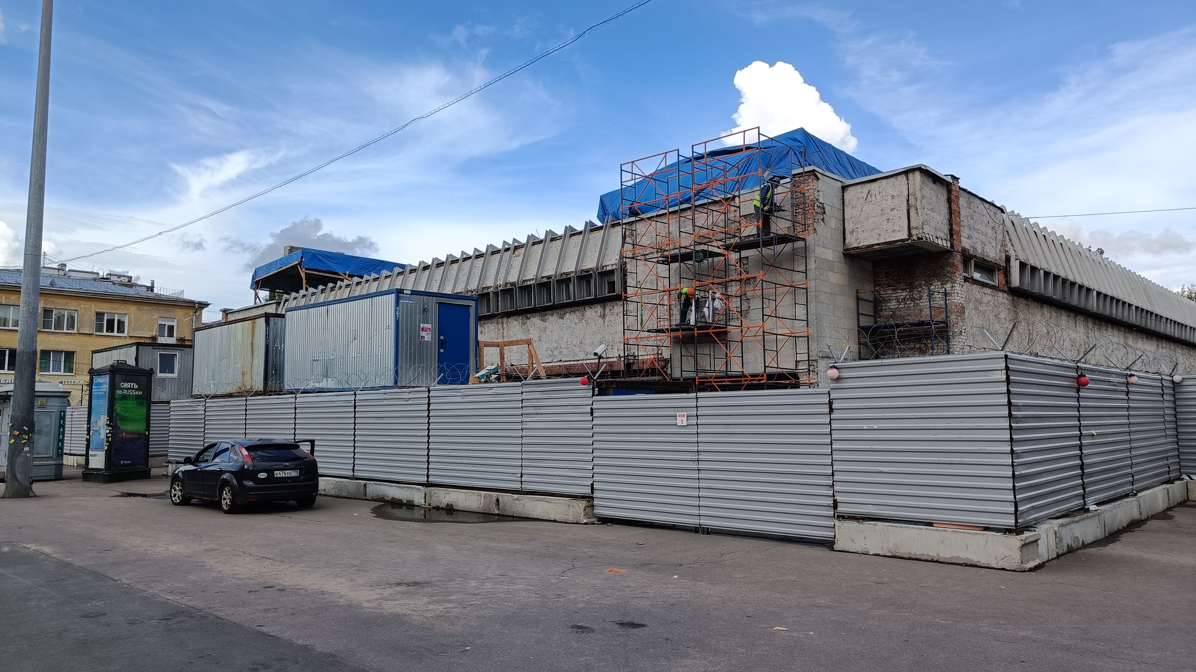 Вчера проходил мимо - со стороны трамвайного кольца ободрали облицовку здания (насколько видно из-за забора).
