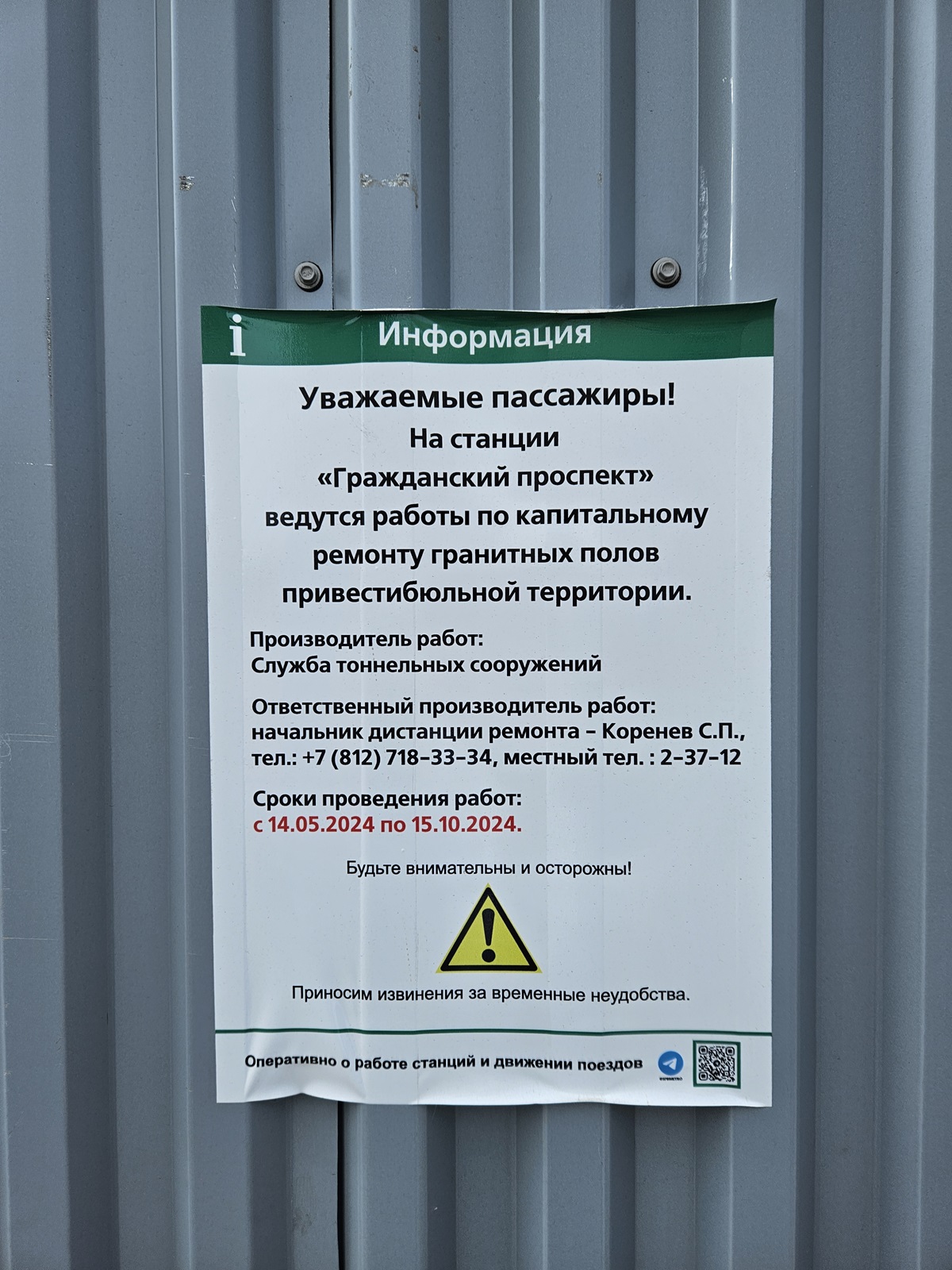 Напомним, на станции "Гражданский проспект" планируется капитально отремонтировать вестибюль, машинный зал, другие помещения, а также восстановить эксплуатационные характеристики конструкций наклонного хода и заменить эскалаторы. На прошлой неделе метрополитен начал поиски подрядчика, который разработает проектную и рабочую документацию, выполнить эти работы необходимо к 17 января 2028 года."Да, закрываться будет, но не раньше чем через 3-4 года. Сейчас только старт проекта и сложно о сроках говорить", — заявили в пресс-службе предприятия, отвечая на вопрос "ДП".