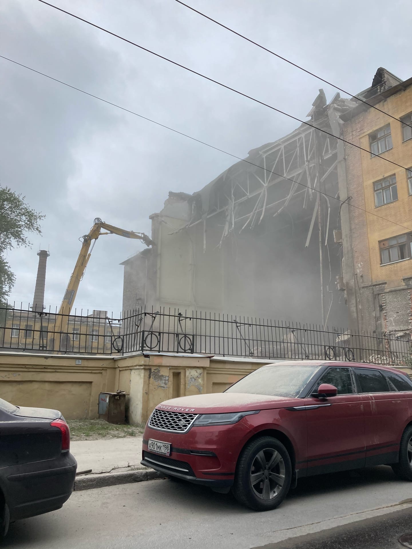 В Петербурге два дня сносят «холодильник» на Шкапина. Остановить работы не в силах полицейские, приставы и даже решение суда