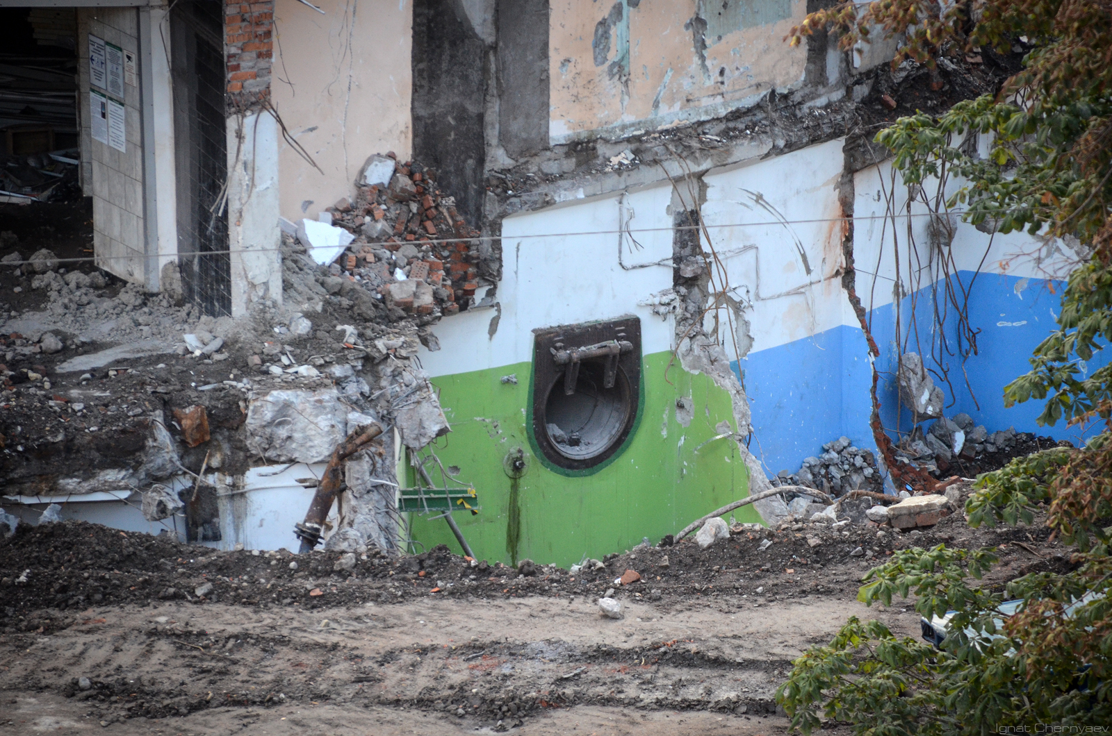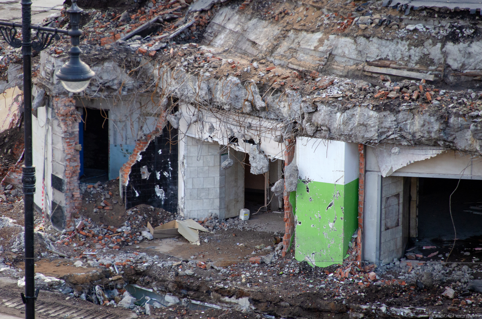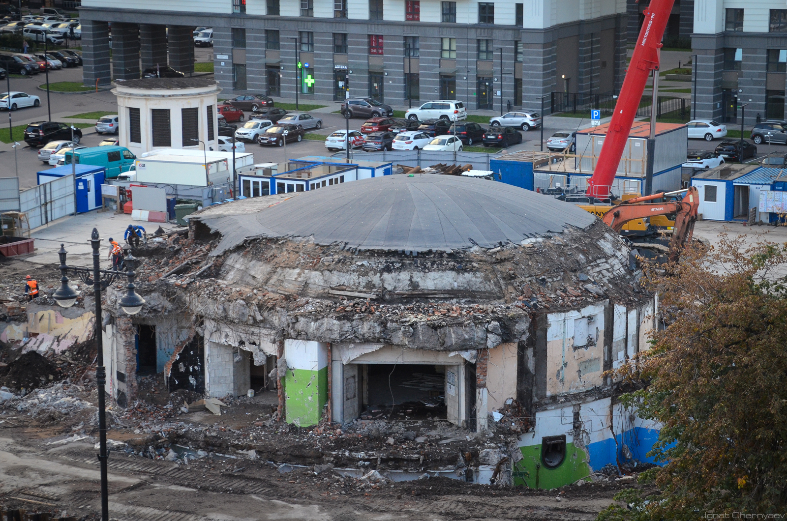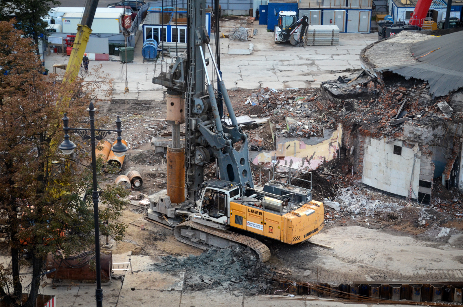 Вокруг сохраняемого остова монолитного защищённого вестибюля уже вовсю бурят свайное поле: