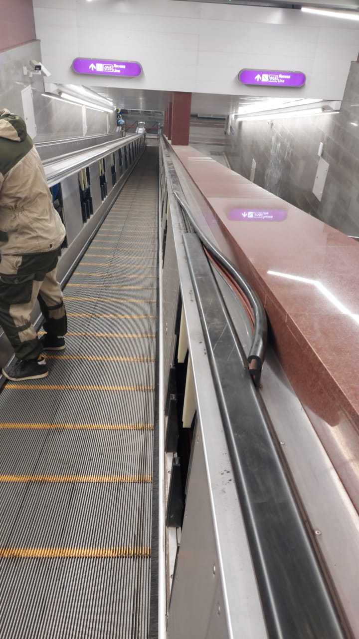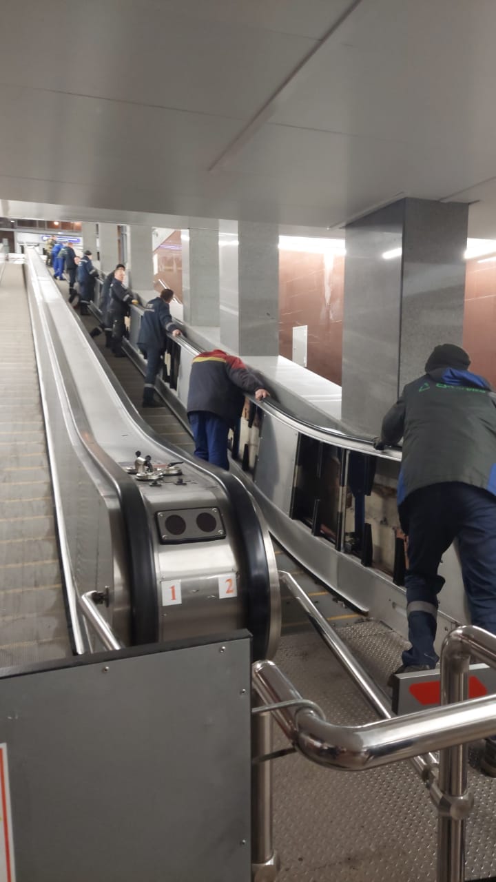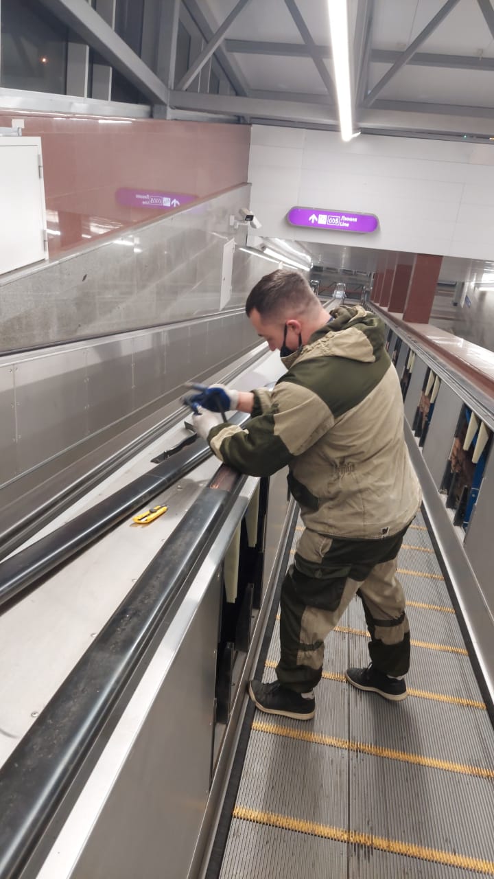 26.03.2021 - Организация ЗАО «Эс-сервис» приступила к выполнению работ по монтажу и стыковке поручней траволаторов на станции «Проспект Славы» Петербургского метрополитена.