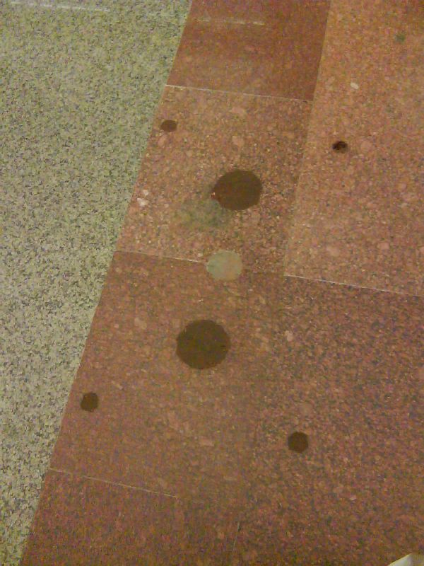 Инфосос будет под лайтбоксами, ближайшими к наклонному ходу. Отверстия уже готовы, но пока замазаны. Фотография 10 апреля: