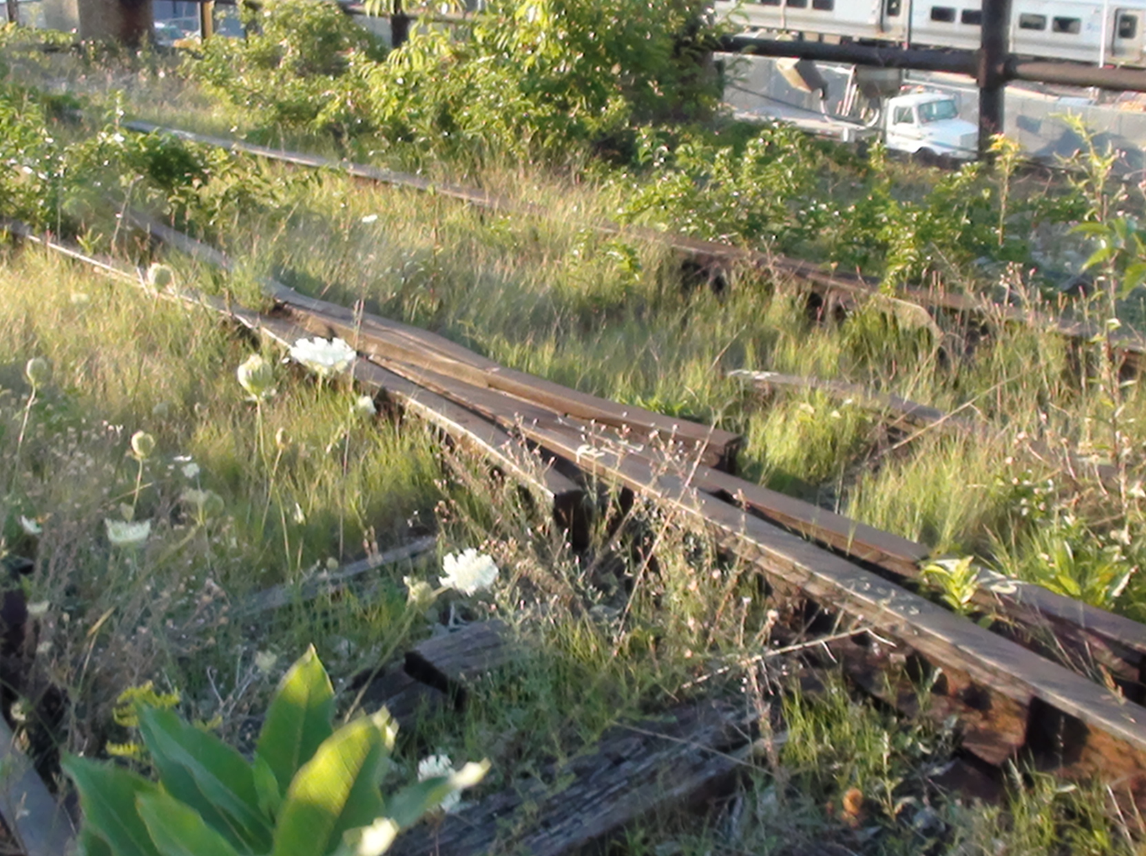 Растительность есть почти до самого конца. Вот фото 3-й части, огибающее депо "Гудзон", где находятся поезда LIRR.