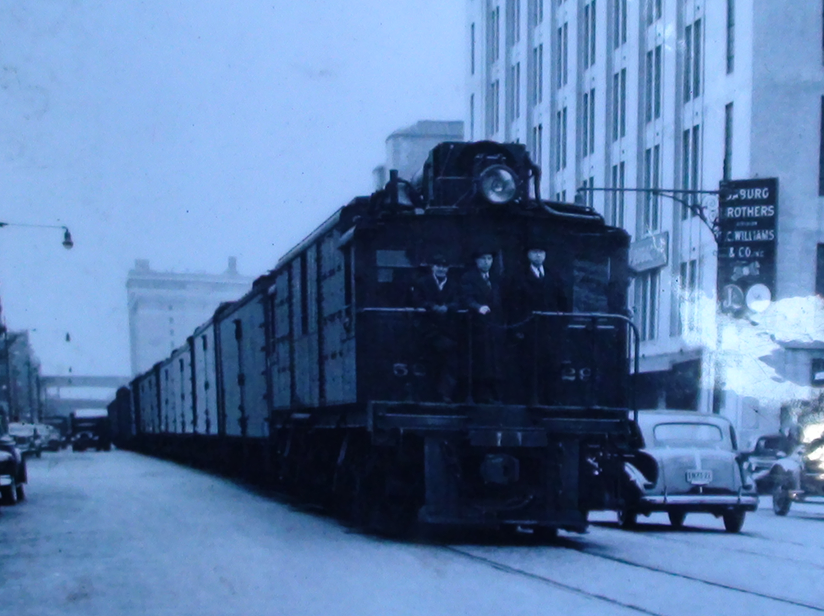 Да, поезд по улице это супер... интересно, как решались вопросы с пробками на дорогах? Или тогда столько автомобилей не было?