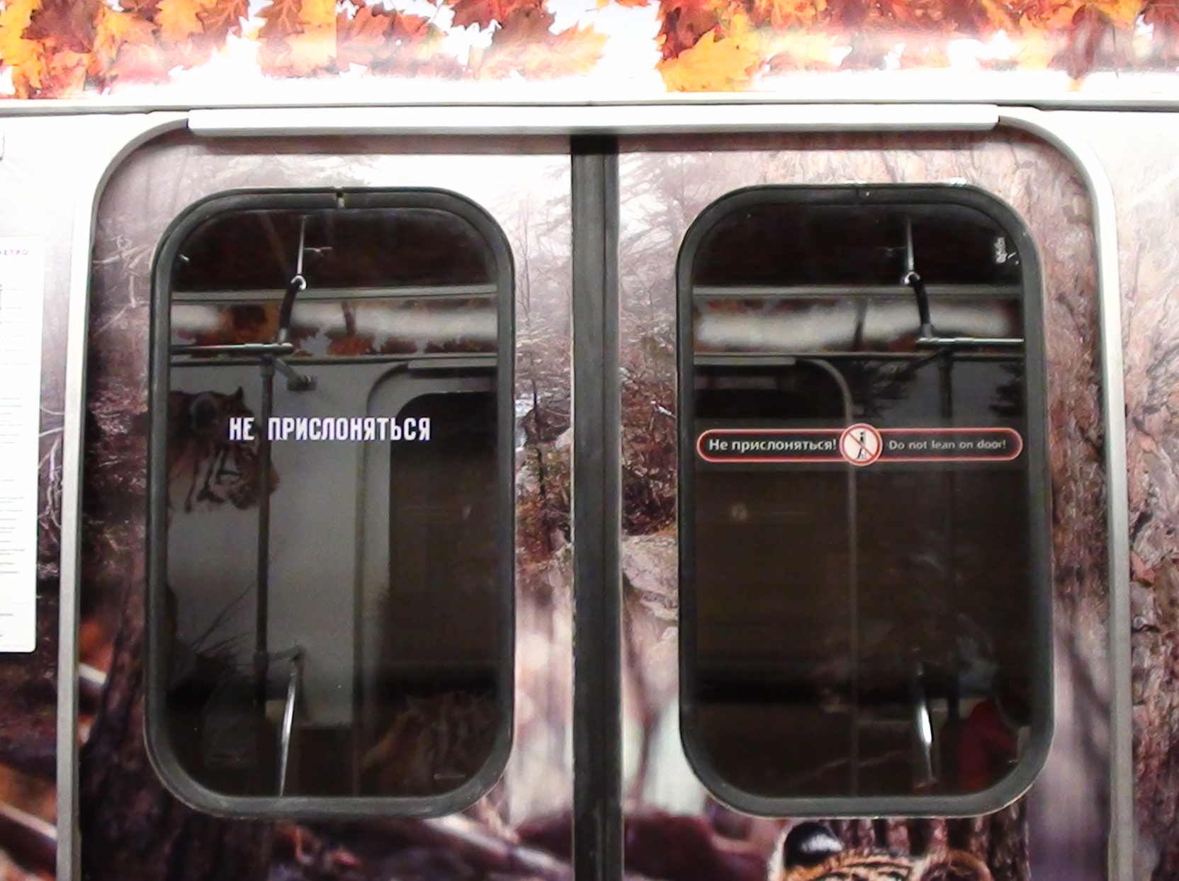 На одном вагоне "НЕ ПРИСЛОНЯТЬСЯ" даже комбинировано (московский и питерский вариант) :D