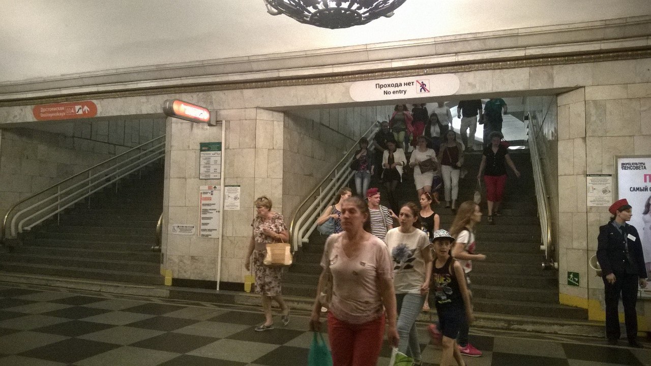 Проблема в том, что площадка перед переходом на Звенигородской заметно меньше, чем на Пушкинской или Владимирской. Ещё и со ступеньками