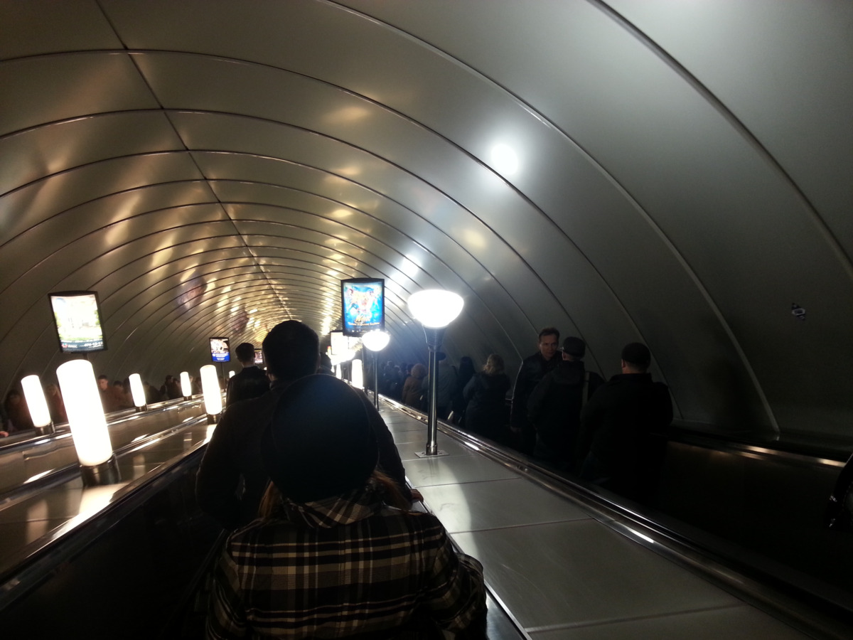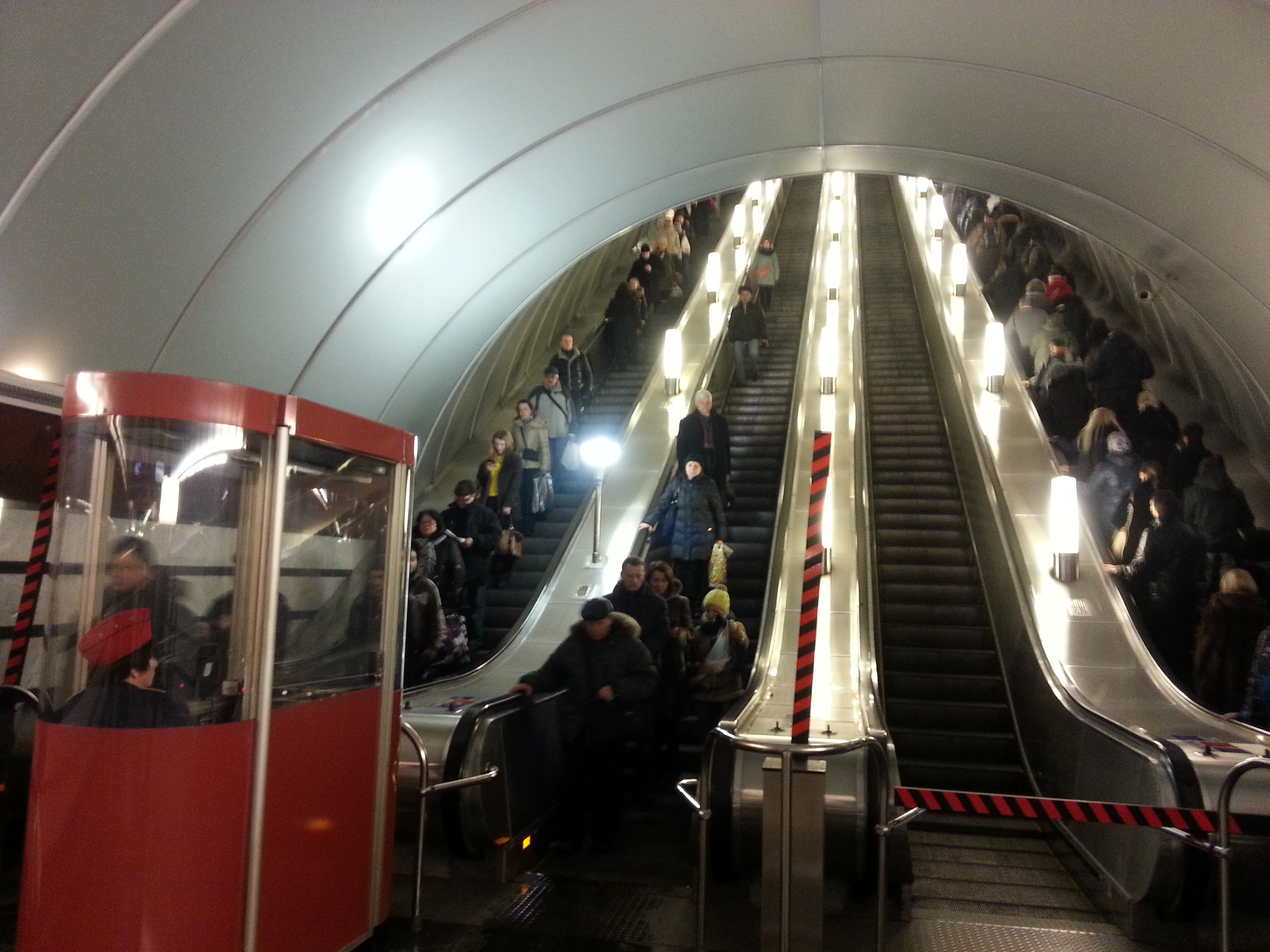 P.S. Обратите внимание - работают два эскалатора на спуск (время 18:40). Утром работали два правых на подъём.