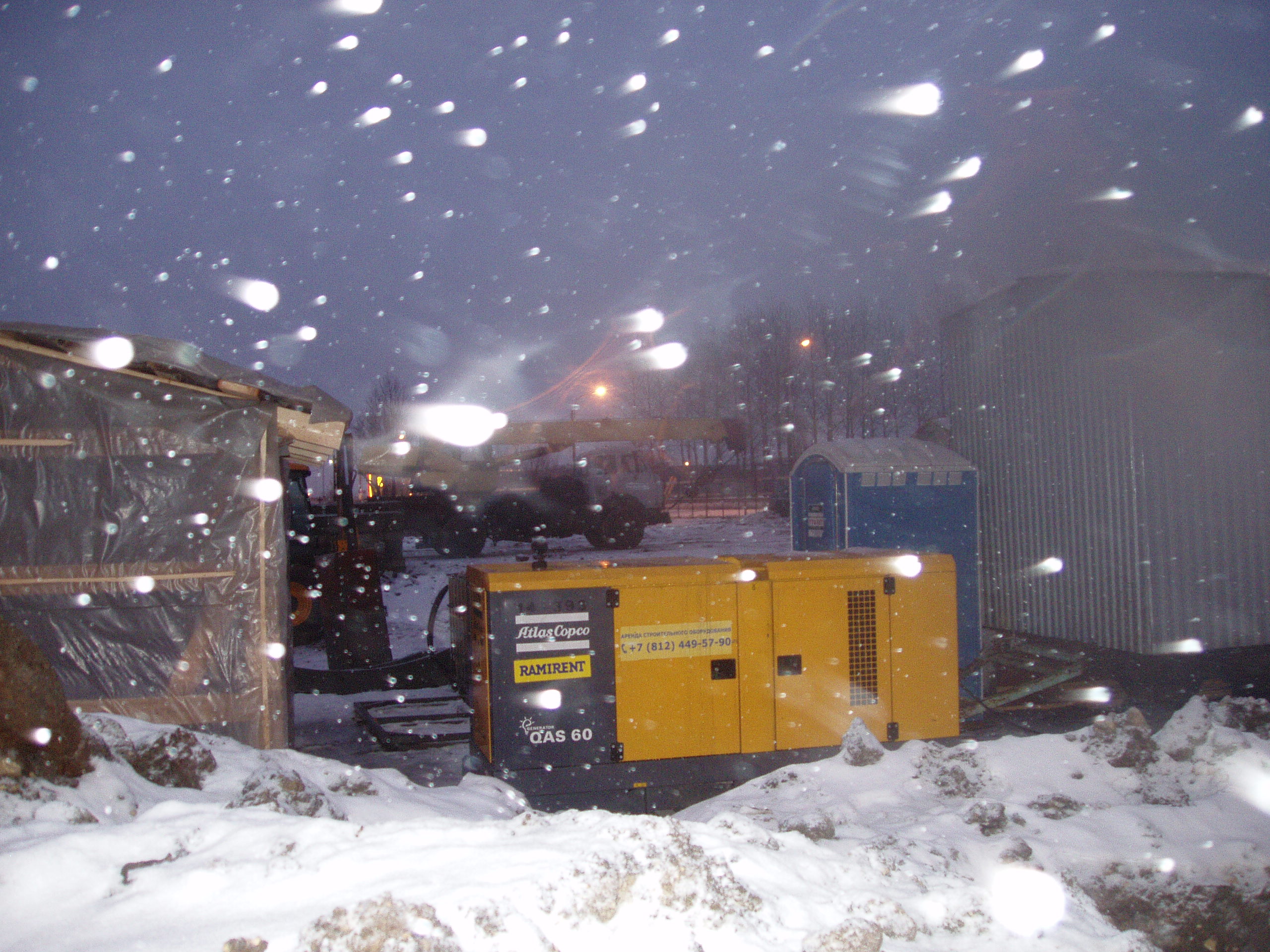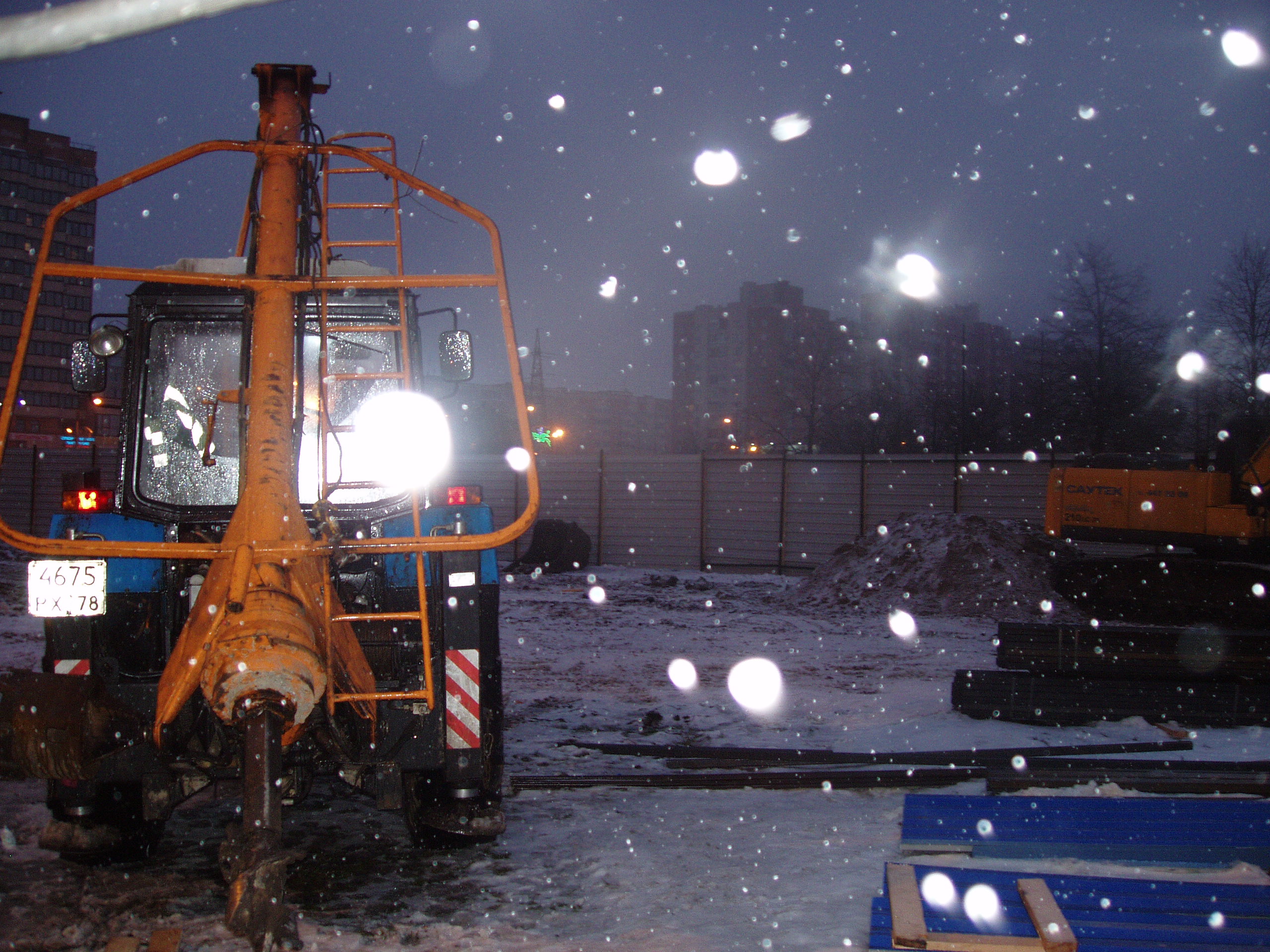 Оживленное место. Работало человек 10-12, расчищали площадку, укладывали бетонные плиты, ограждение тоже еще не закончили. Техники на площадке побольше (6-8 ед.). Бытовки уже обжитые, работает дизель. Т.е. электричесство пока не подведено.
