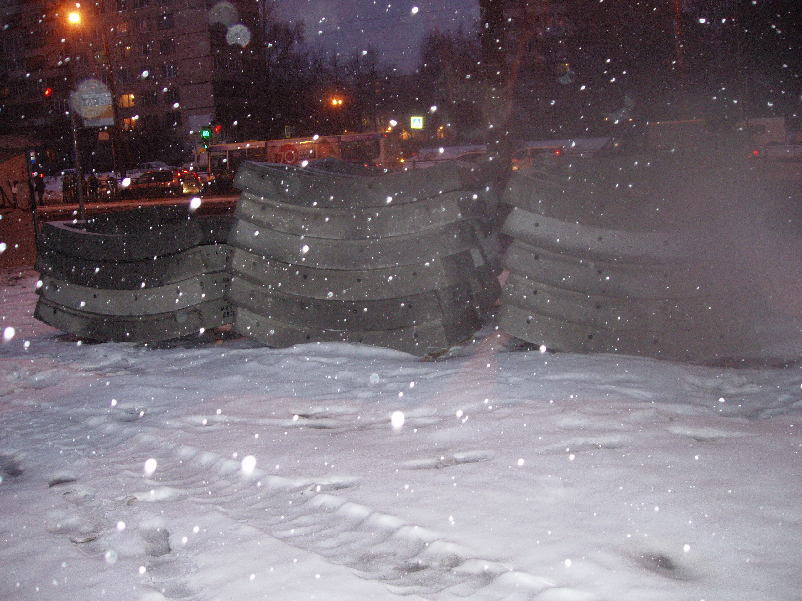 северная площадка - делают забор, сегодня бурили дырки со стороны трамвайного кольца. Бабки из церкви с недовольными видом шмыгают прямо сквозь строительную площадку, явно грядет народное недовольство - ведь им же ЗАКРОЮТ ПУТЬ К ЦЕРКВИ!. Со стороны пр.Славы забор заканчивается почти у существующего пешеходного перехода.