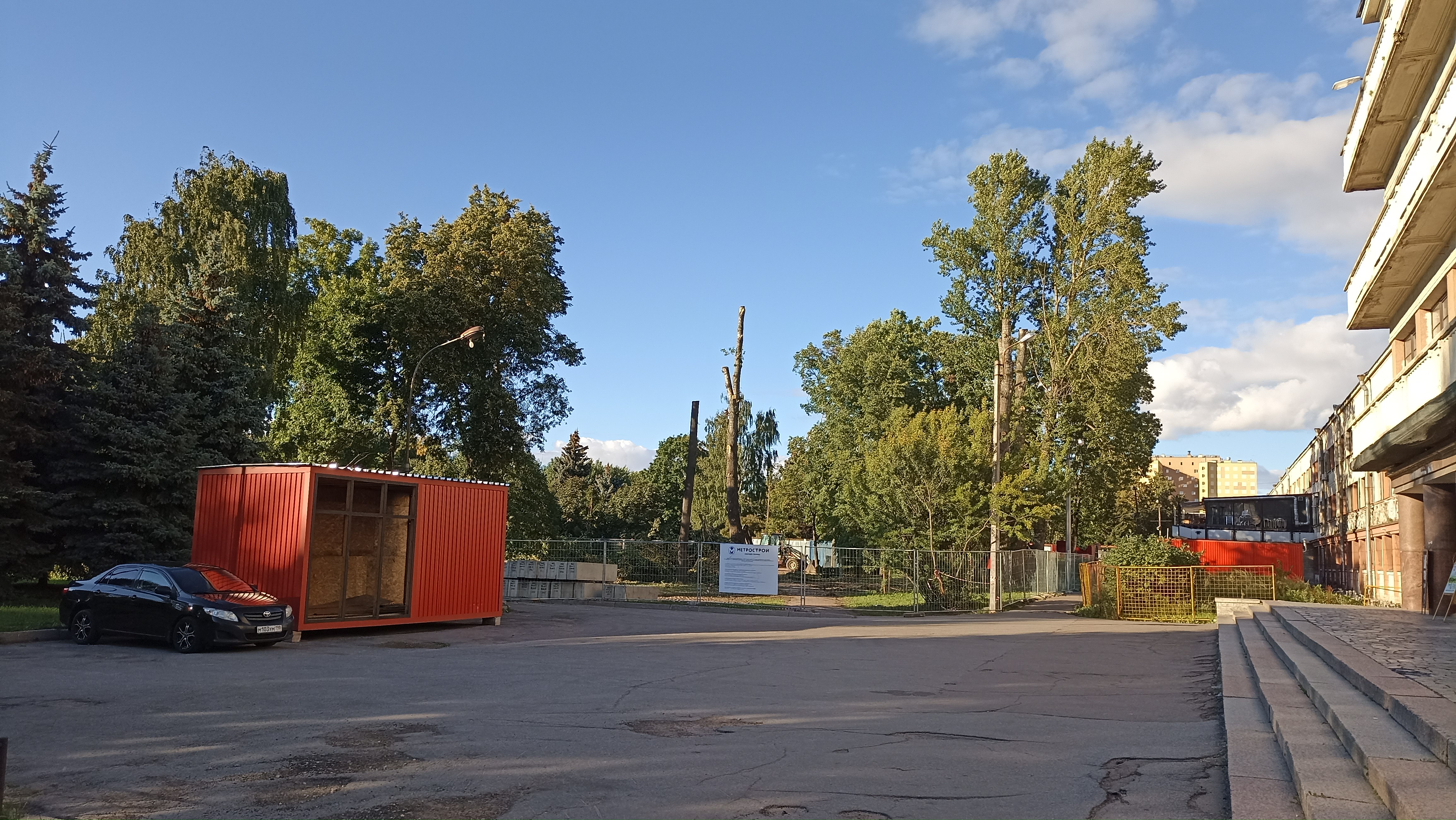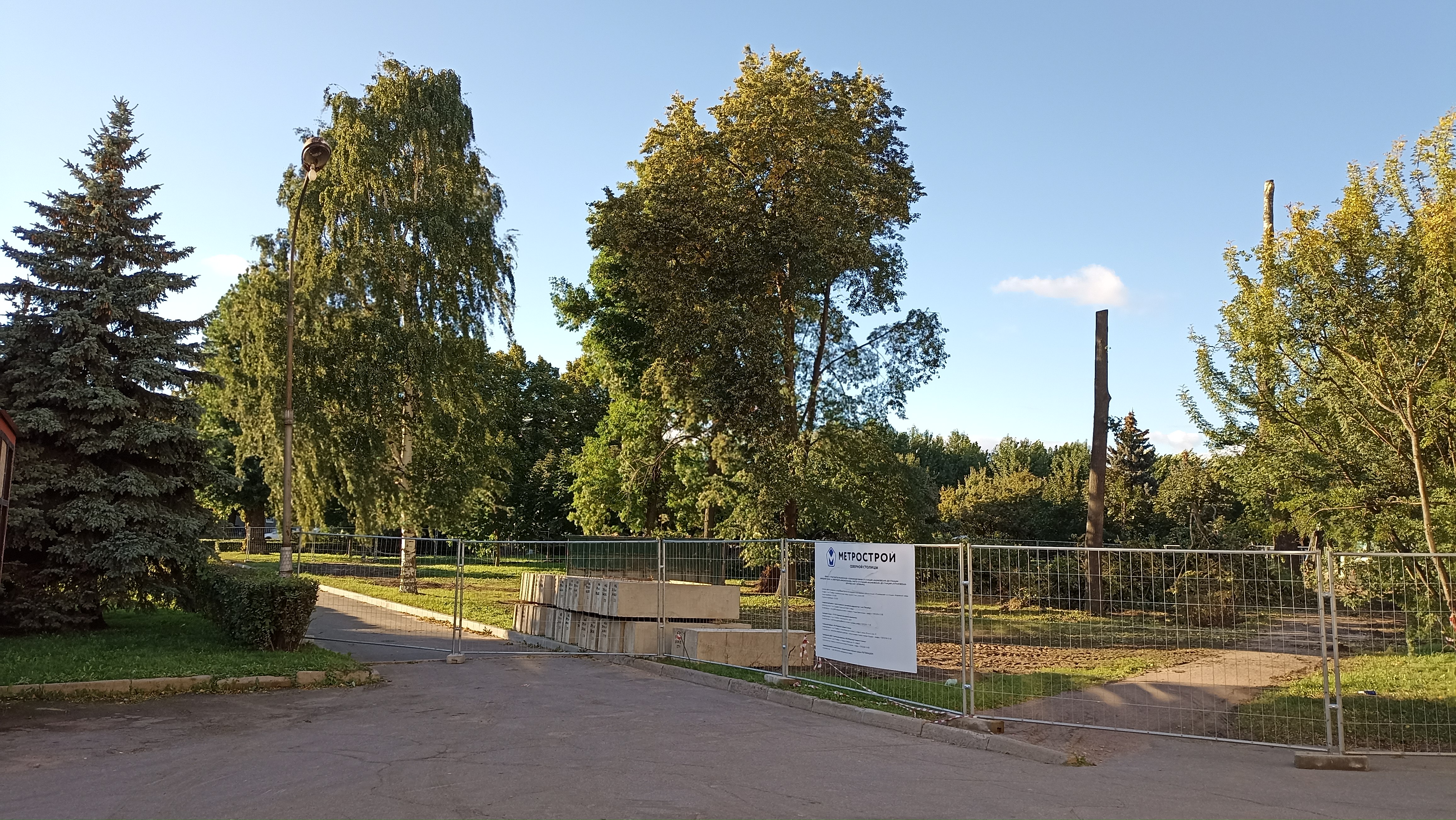 Огородили большую площадку перед ДК Газа, рубят деревья... По инфощиту - замораживание грунта для проходки пересадочного узла.