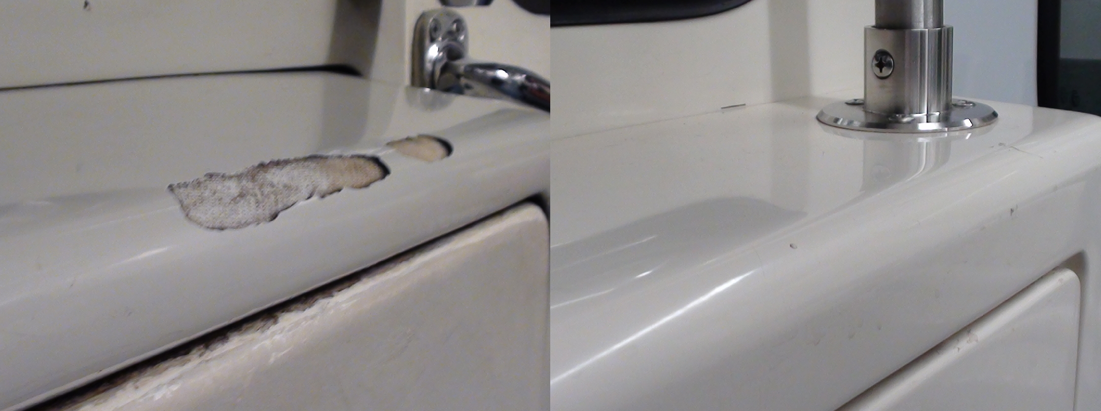 Ещё один довод того, что ящики - это зло. Как видим, слева - вагон 1704, где пластик уже отошёл от компонентов. В Яузах использован такой же материал, который со временем возможно будет похожим на то, что в 1704. Уверен, что такие панели (как в 1704) будут до конца эксплуатации. Хотелось бы надеяться, что в Яузах не будет подобного. В НеВе такой вариант исключён, т.к. ящиков нет, и вся поверхность в этом месте покатая.