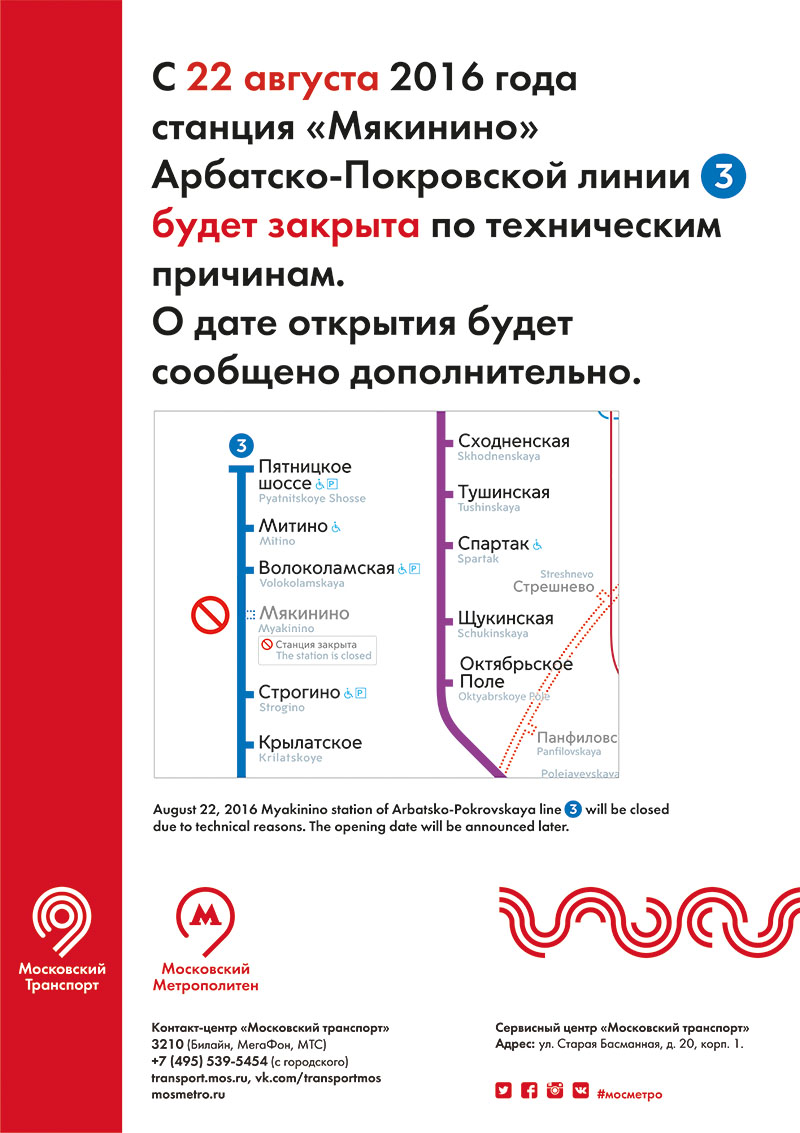 Станция «Мякинино», отметил он, не принадлежит Московскому метрополитену, а лишь находится у него в эксплуатации.