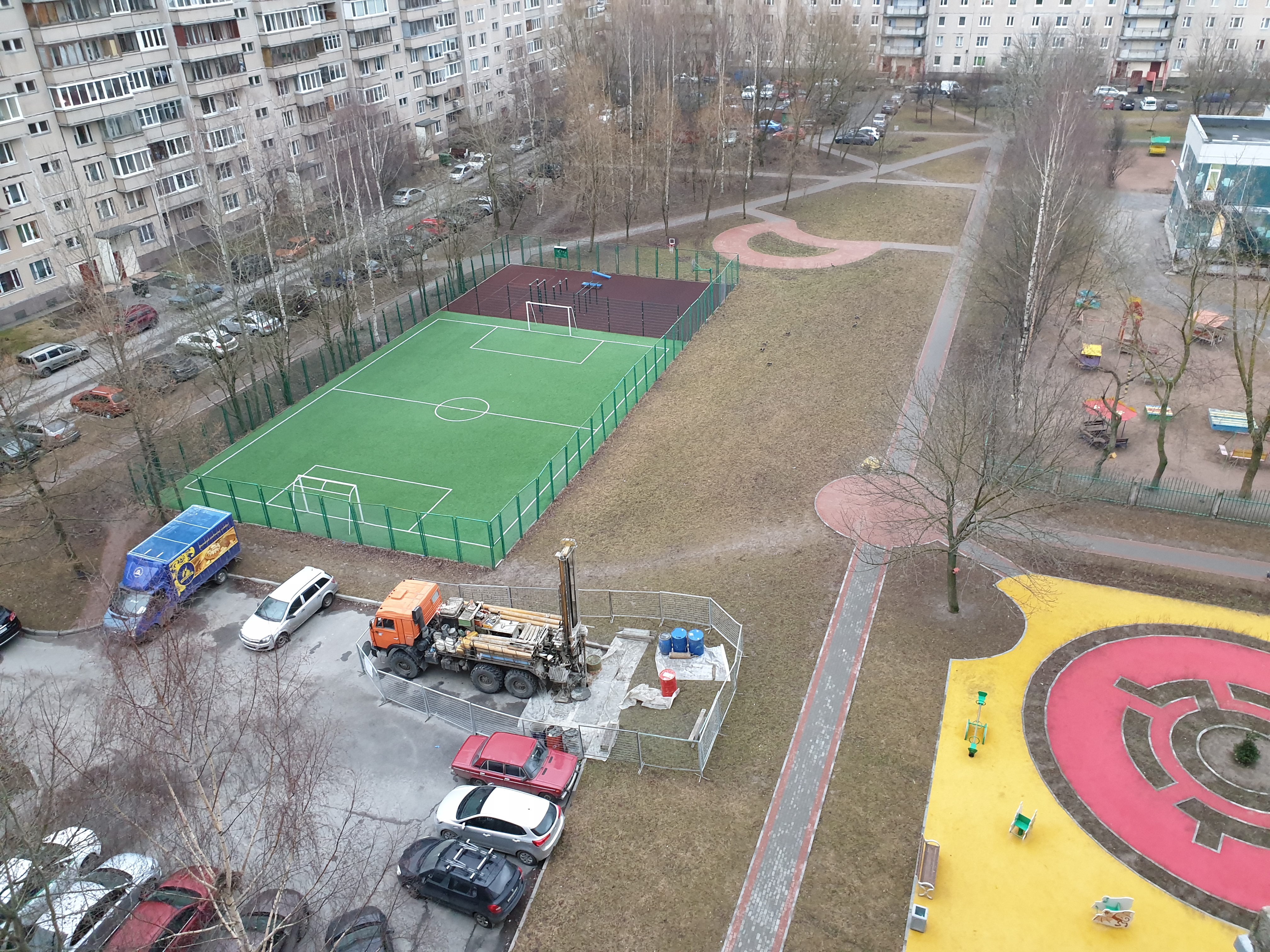 Буровая стоит и у 5 скважины (двор ул. Маршала Казакова, д.38, к.1)