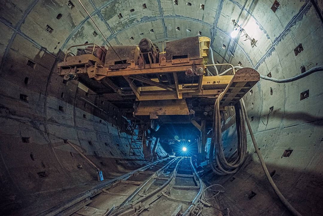 Выработки у шахт 843 и 842 и построенный перегонный тоннель между Юго-Западной и Путиловской.