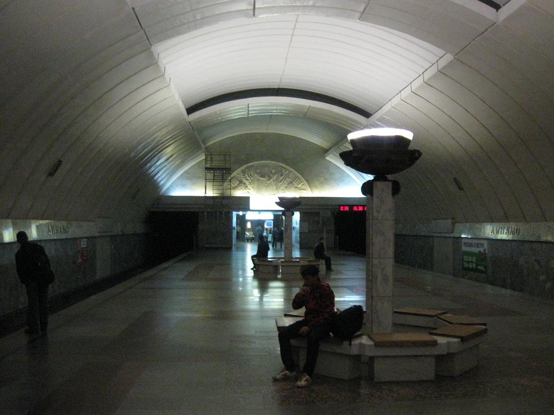 Находится рядом со стадионом, напоминает помесь питерских Спортивной, Обухово и, немного, Ладожской. Одна из самых пустнных станций. Любопытно выглядит свод — местные проектировщики, видимо, не желали делать хоть один голый потолок. Впрочем, это в плюс.