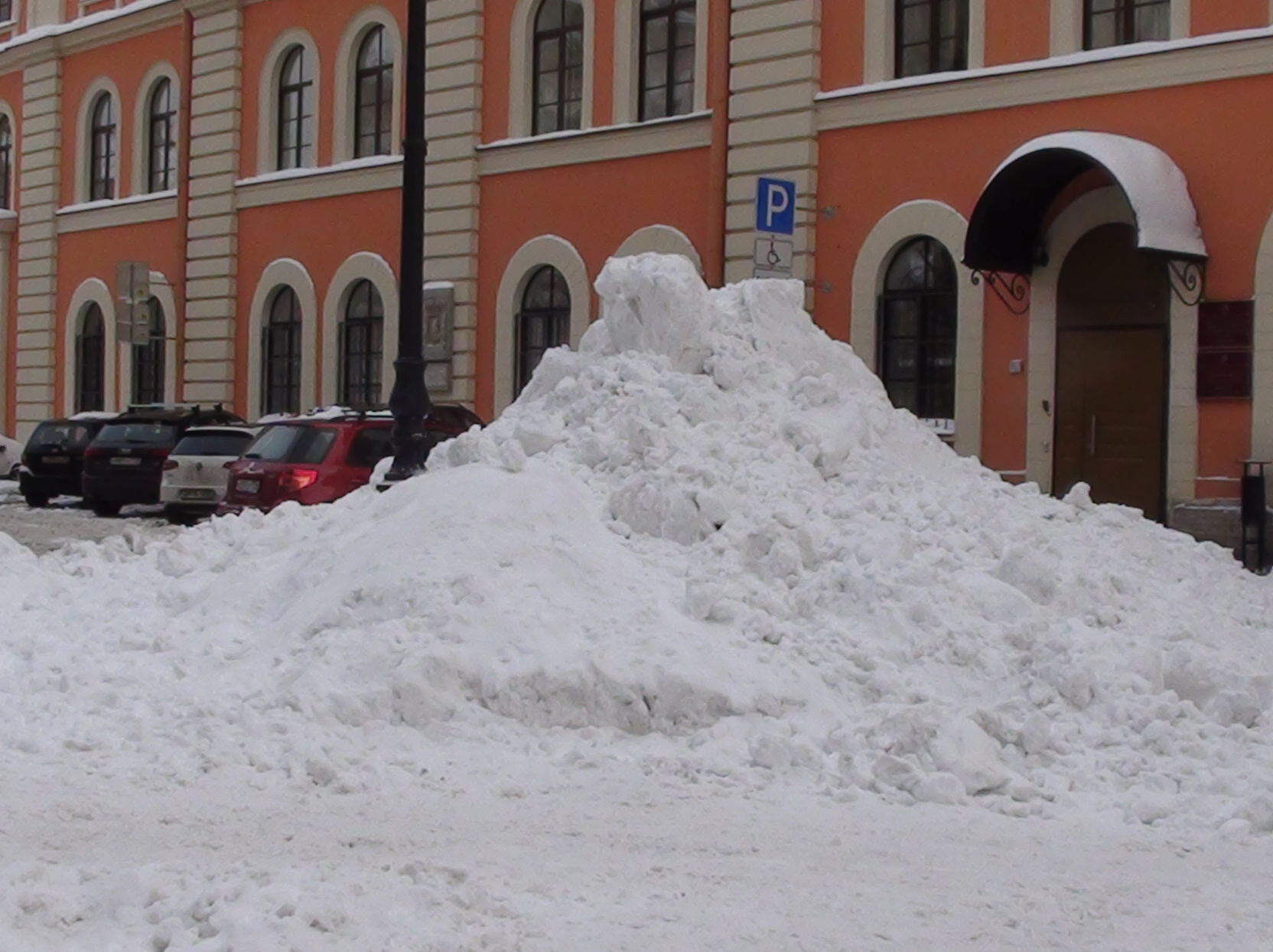 Мне показалось, что это где-то у Выборгского шоссе (там есть двор с похожими домами, недалеко от пр. Луначарского). Виноват, что не проверил по гуглу. Но суть действительно одна, утром по всему городу была очень схожая картина.