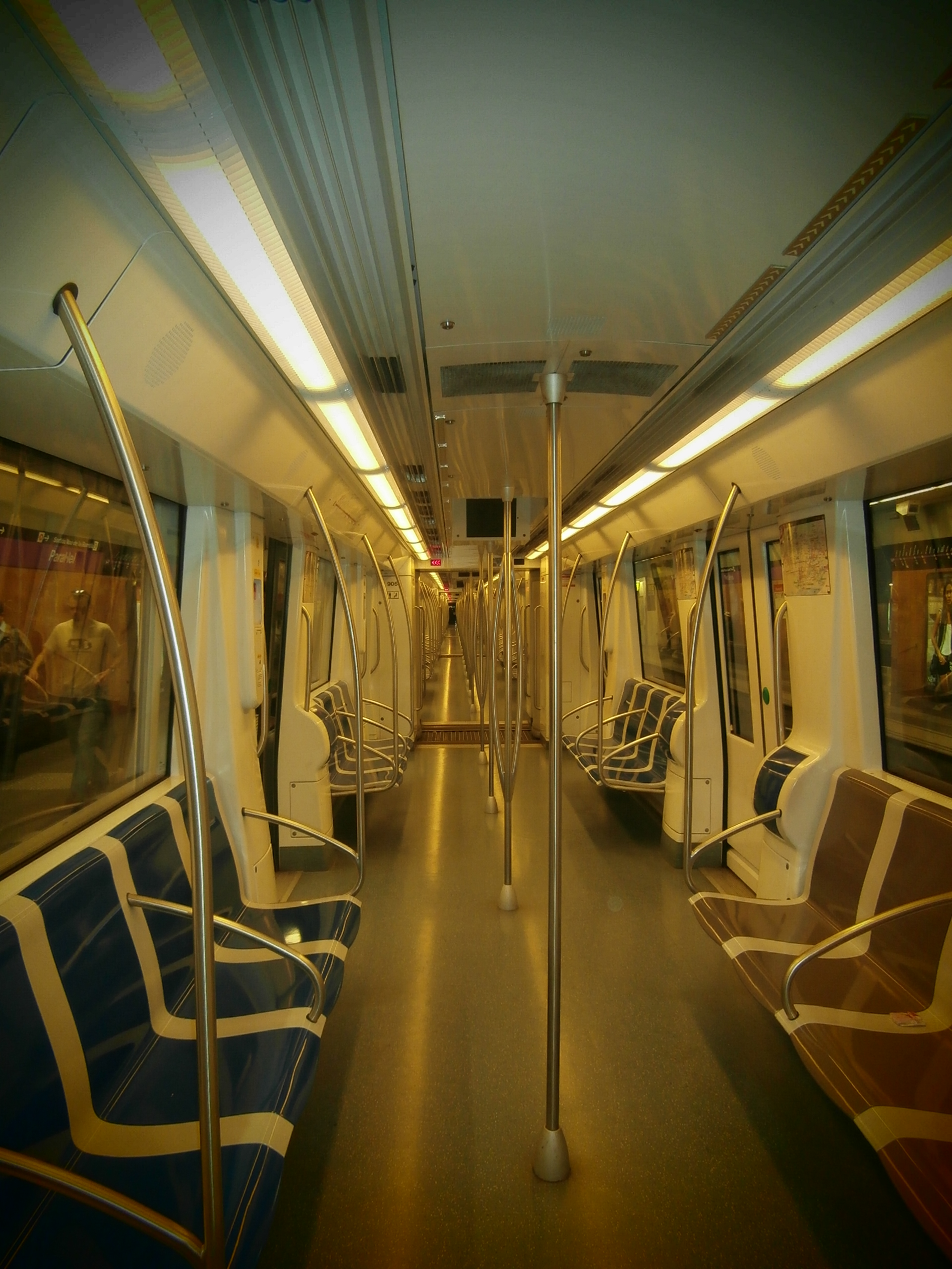 Побывал в Барселоне и в тамошнем метро, к сожалению фоток сделать не успел, так как спешил. Как повезло Барселоне с грунтами - можно строить мелким заложением! Вход в метро - лестница вниз или лифт. Разовый билет правда дороговат - 1,40 евро. Также нужно обращать внимание, в какой вход заходить. Я зашел в один из входов, купил билет, прошел через турникет, а оказалось, что зашел не на ту платформу (там платформы береговые) и на другую сторону не перейти. Пришлось ехать в обратном направлении до пересадочной станции, и там уже перейти на нужную сторону. А так - метро очень приятное, чистое, поезда ходят часто, вагоны с кондиционерами, давки даже вечером рабочего дня нет. Станции отделаны лаконично и функционально, очень много указателей и схем, ориентироваться довольно просто. Метро там конечно не памятник архитектуры, а просто вид транспорта, причем очень приятный и удобный. А архитектурные шедевры в Барселоне не под землёй, а на поверхности