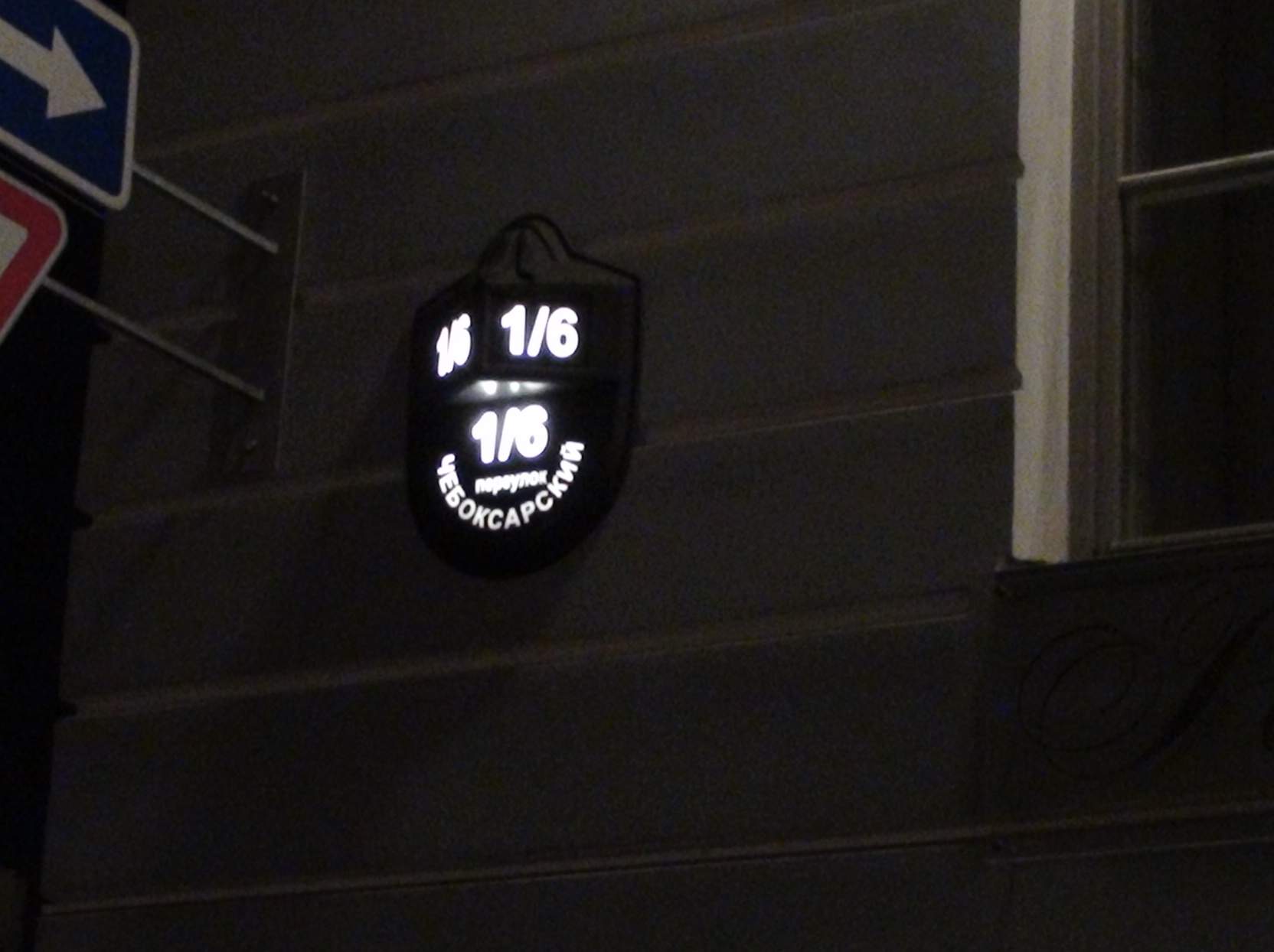 Не так давно заметил подсвеченный современный полудомик!!! Никогда не видел их подсвеченными. Только читал, что по задумке они должны были подсвечиваться. Видимо данная организация в этом доме следит за тем, чтобы они подсвечивались.