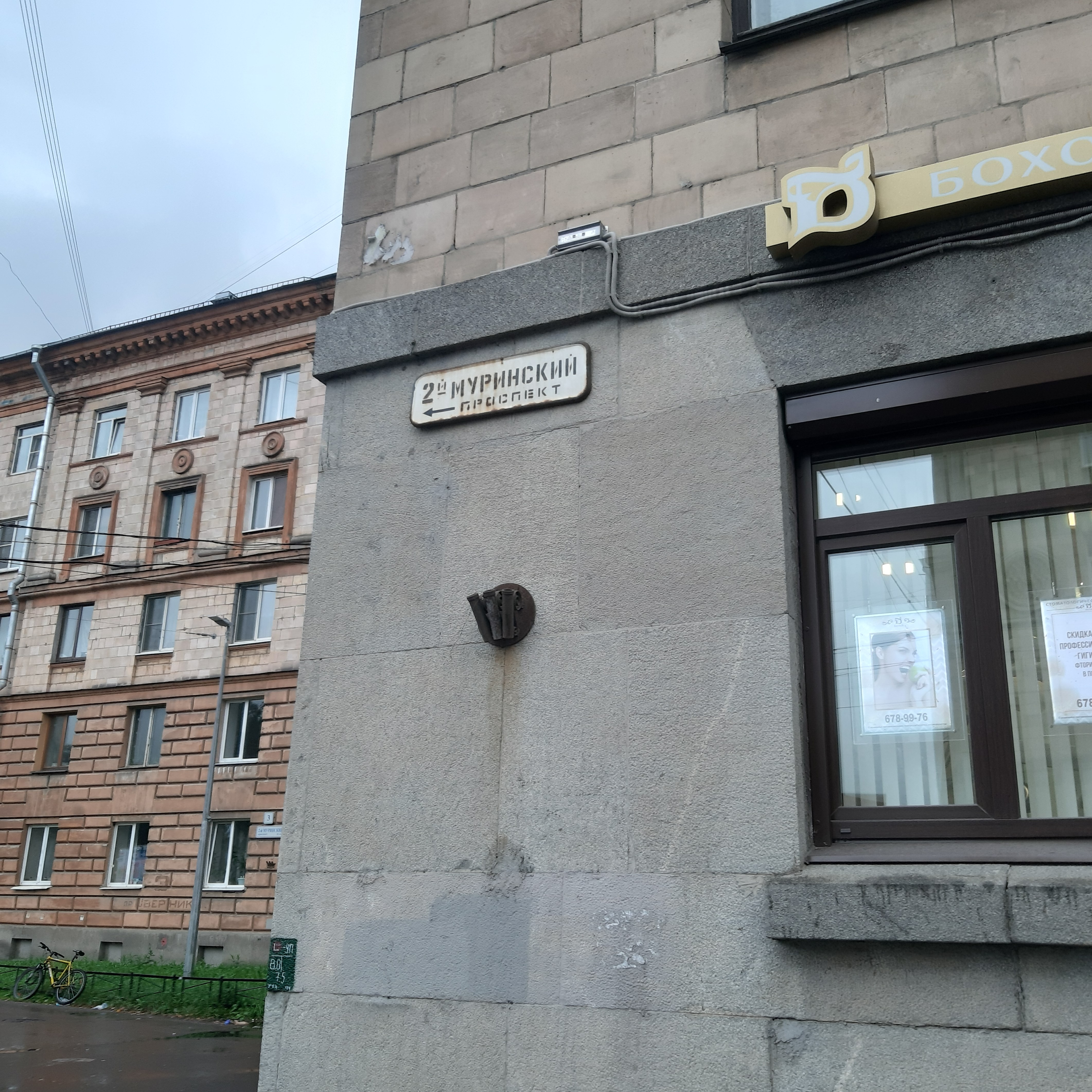 А у Светлановской площади ещё сохраняется (ну, на 9.9.21) другая типовая табличка. Причём где-то между октябрём '16 и июлем '17 её перевесили (!) — прежде была над окном под вывеской