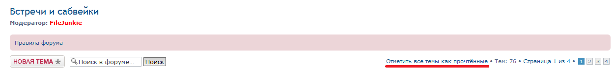 форум "Встречи и сабвейки" горит, как непрочитанный, но ни одной подсвеченной темы не имеет. можно ли как-то отметить форум как прочтенный? пирожки удалять не охота.