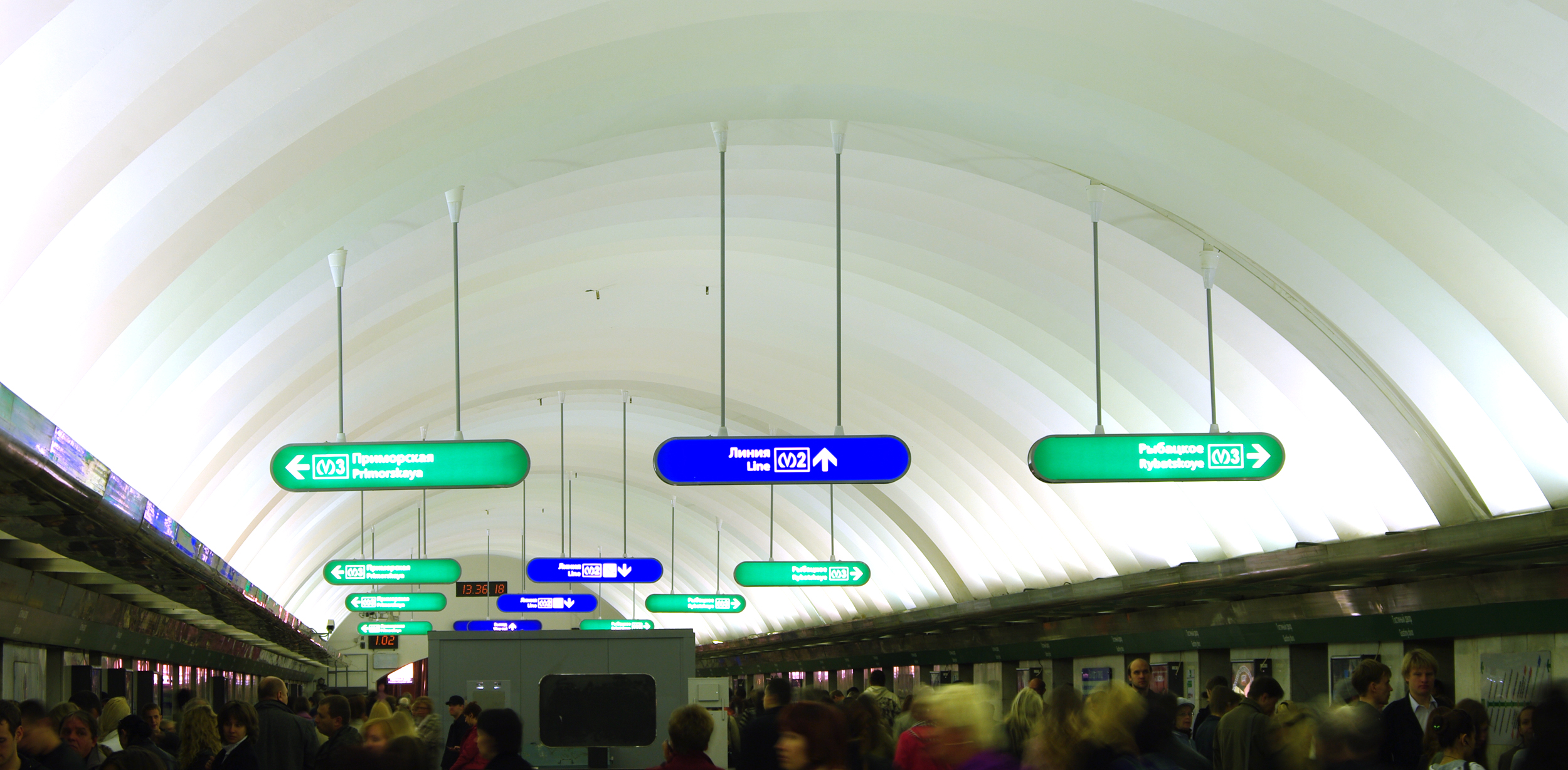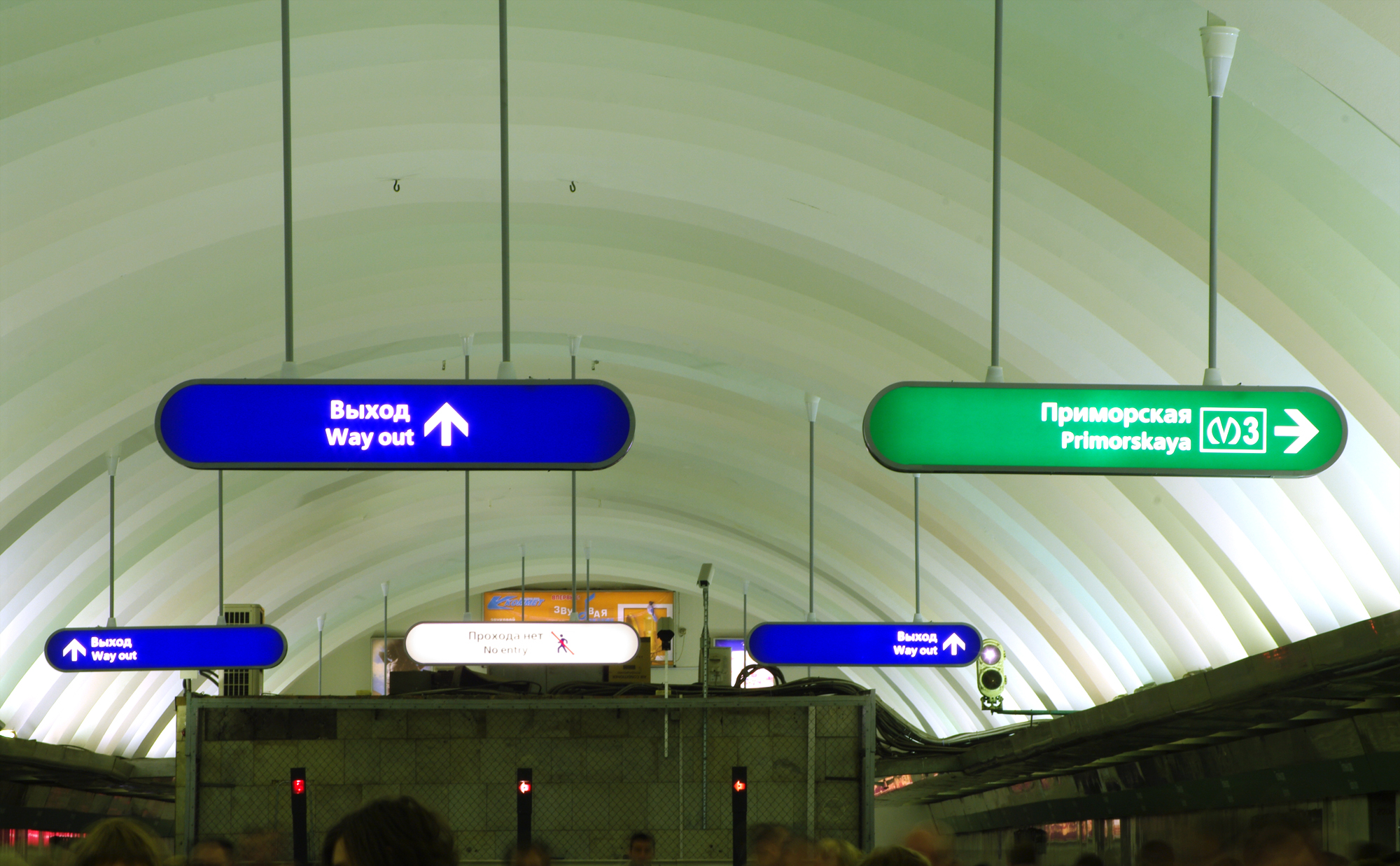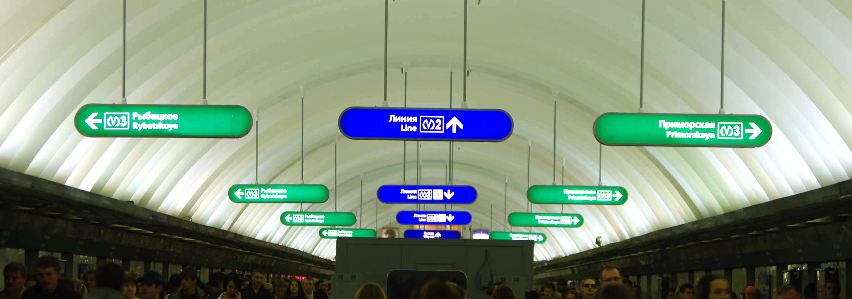 Да, на самом деле указателей не так уж много. Один на подъёме с малых эскалаторов, один посередине, затем две пары у спусков на Невский и один ближе к концу, ну и один при спуске на Невский по эскалаторам.
