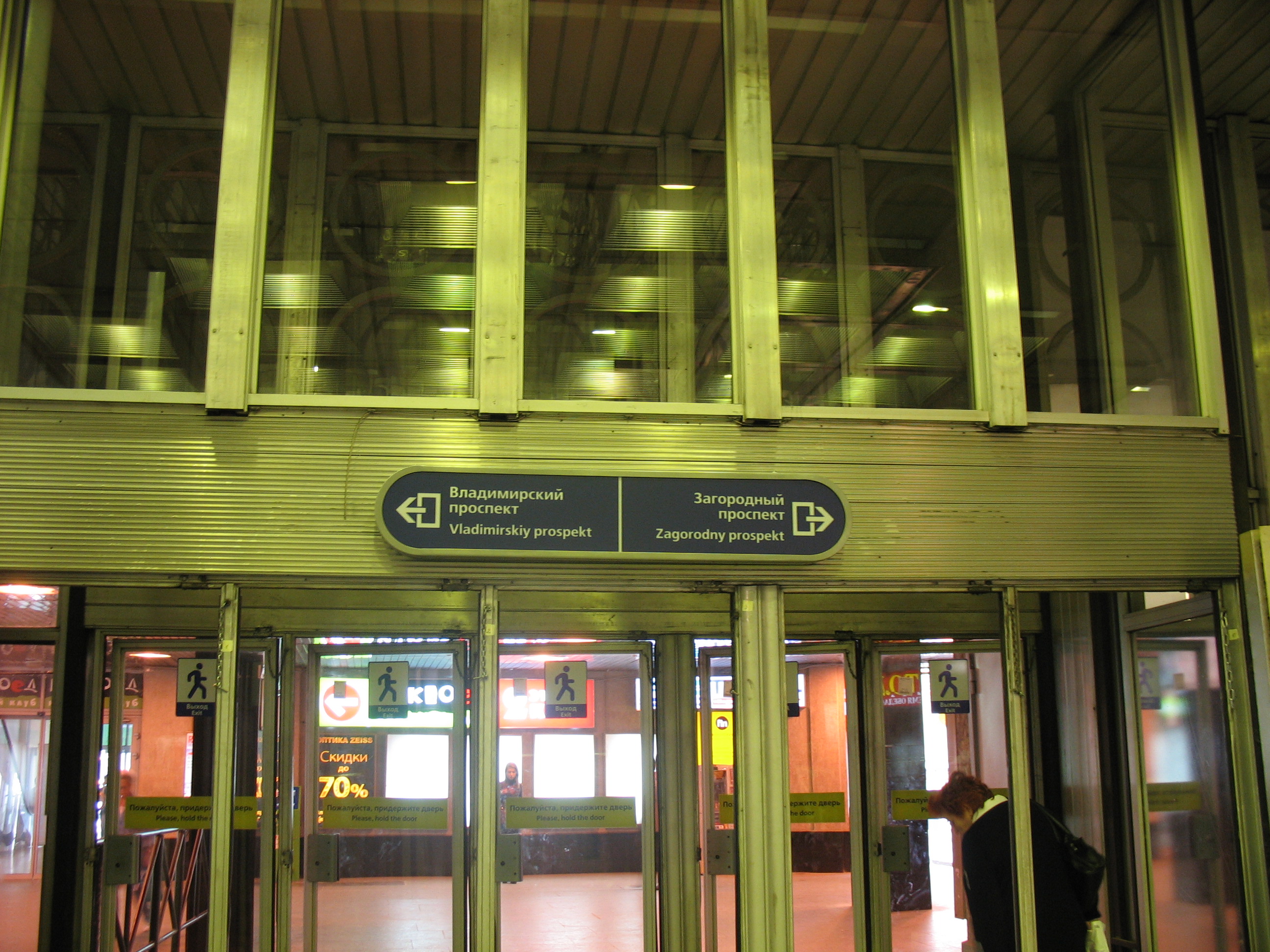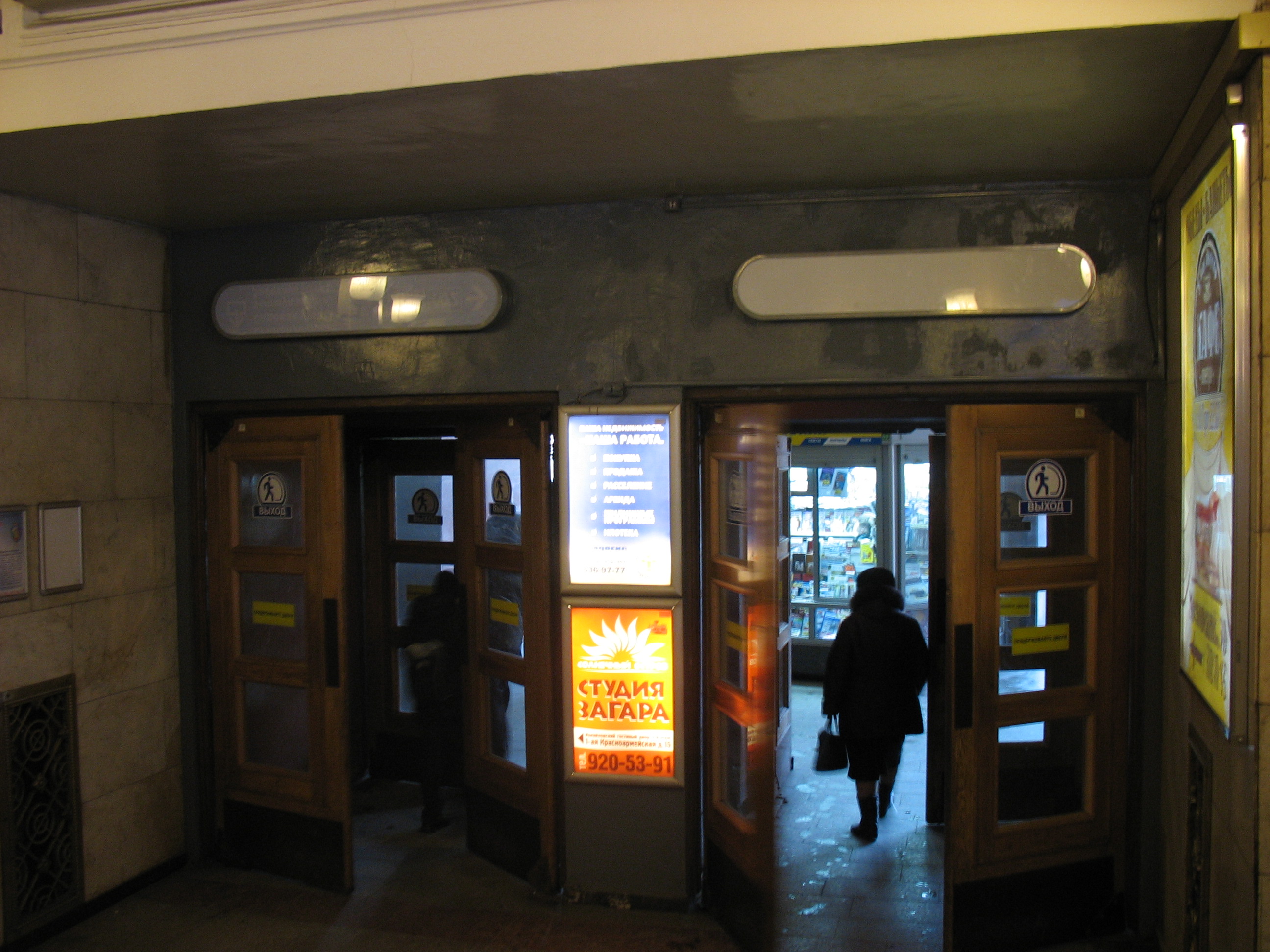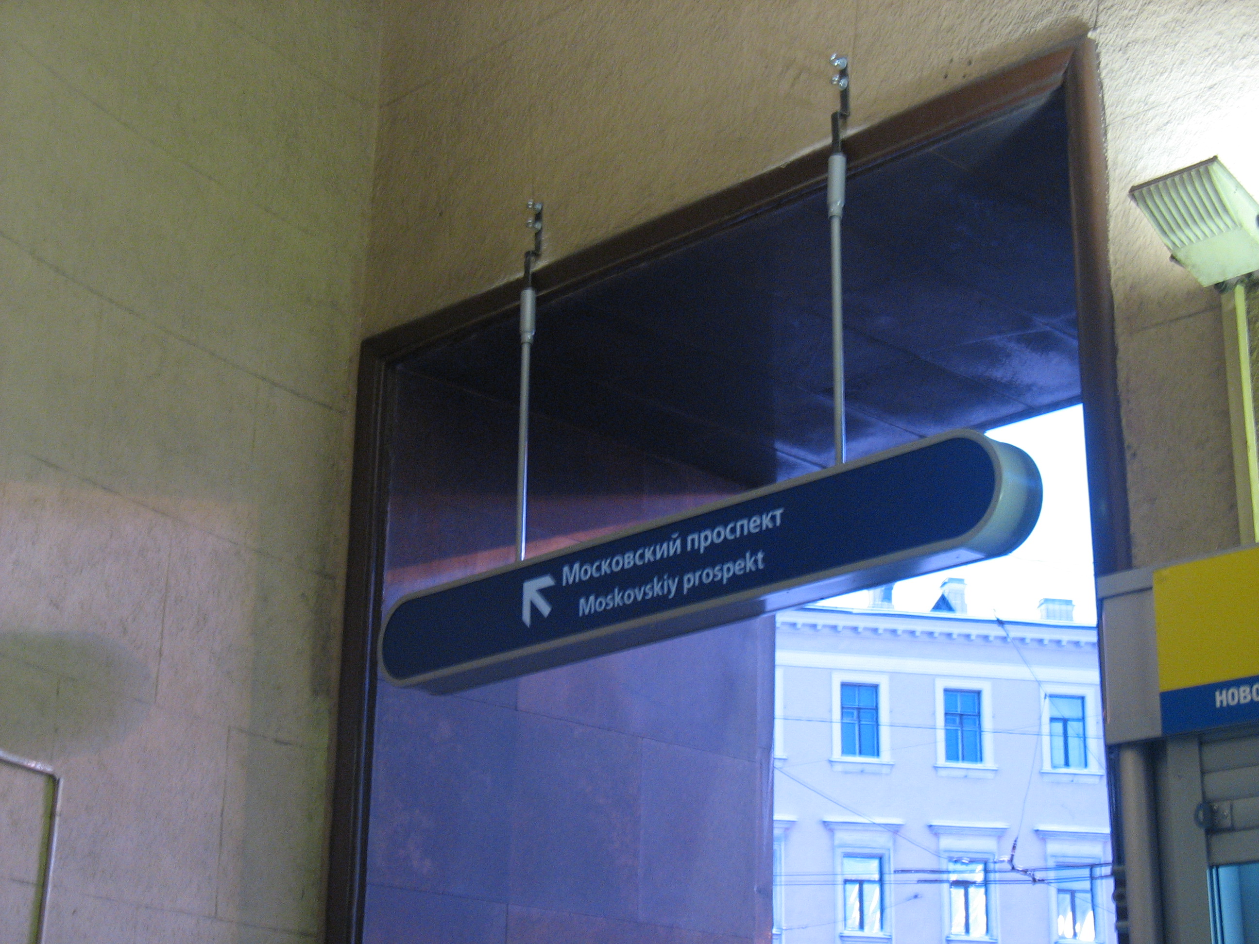 Ну и нафиг такие длиннющие короба на выходе? На них можно было бы разместить расписание пригородных электричек Витебского вокзала, а они написали лишь куцые две строчки. И стрелочка, указующая на Московский проспект, умиляет.