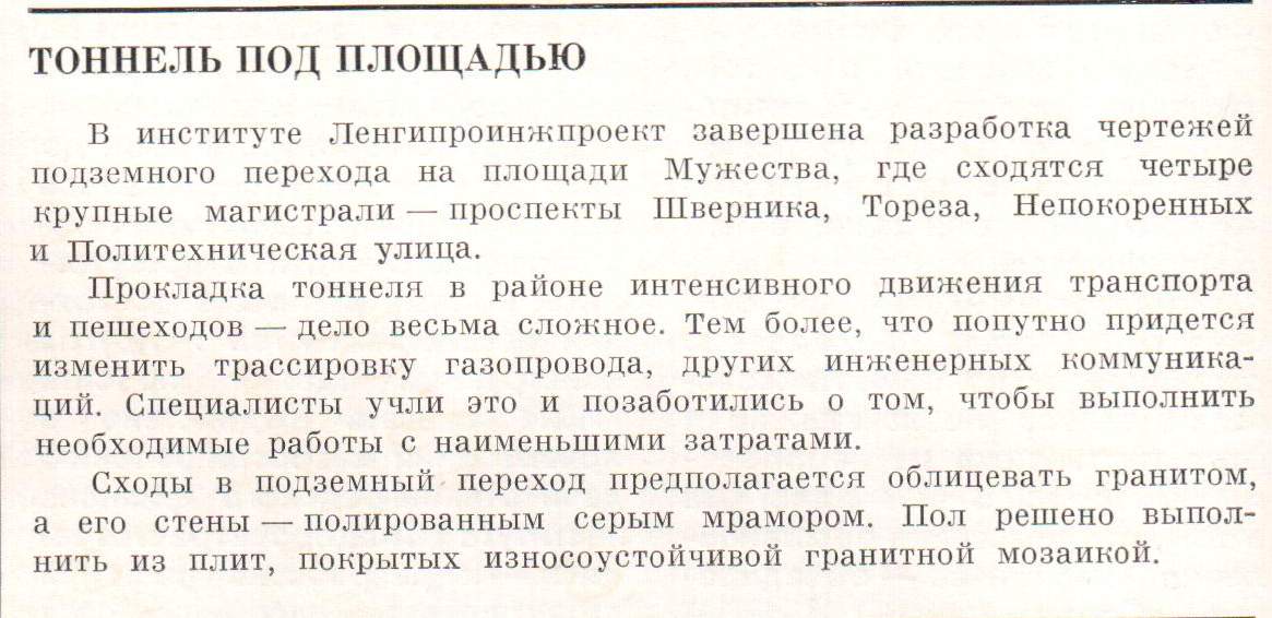 Подземный переход на пл. Мужества. Прожект.