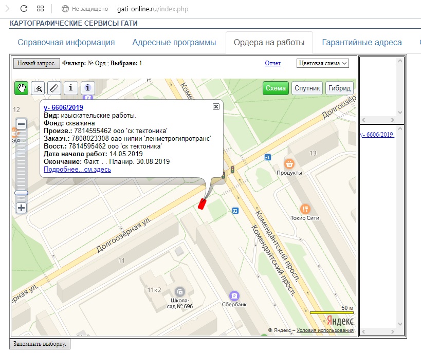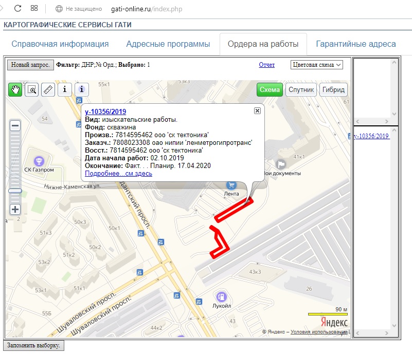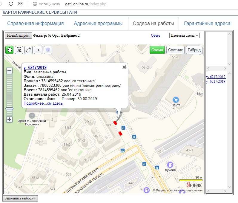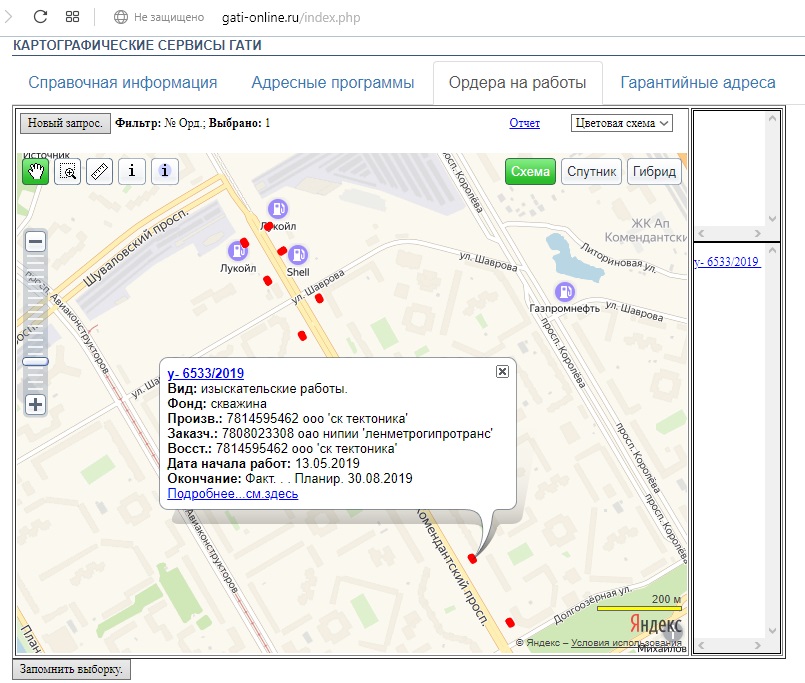 Места выполнения работ на карте: