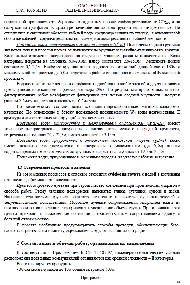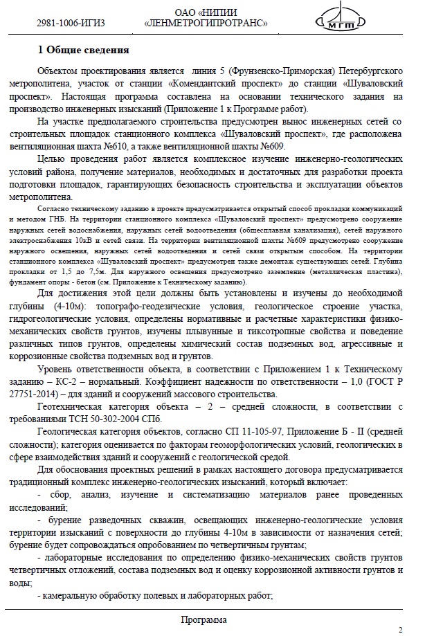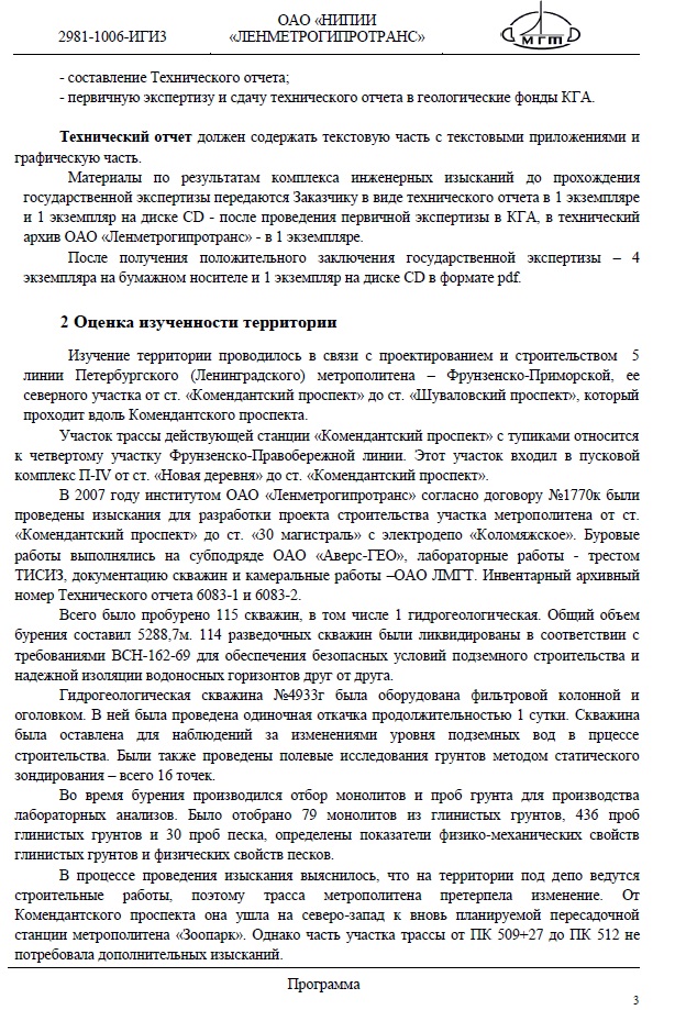 Некоторые выдержки из размещенной документации (Программа выполнения инженерно-геологических изысканий):