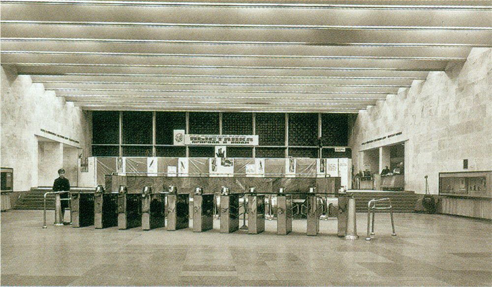 Судя по тому, что гранит на полу ещё не сильно затёрт и в нём ещё видно слабое отражение, то, можно сделать предположение, что это фото сделано где-то в 1968-69 годах.