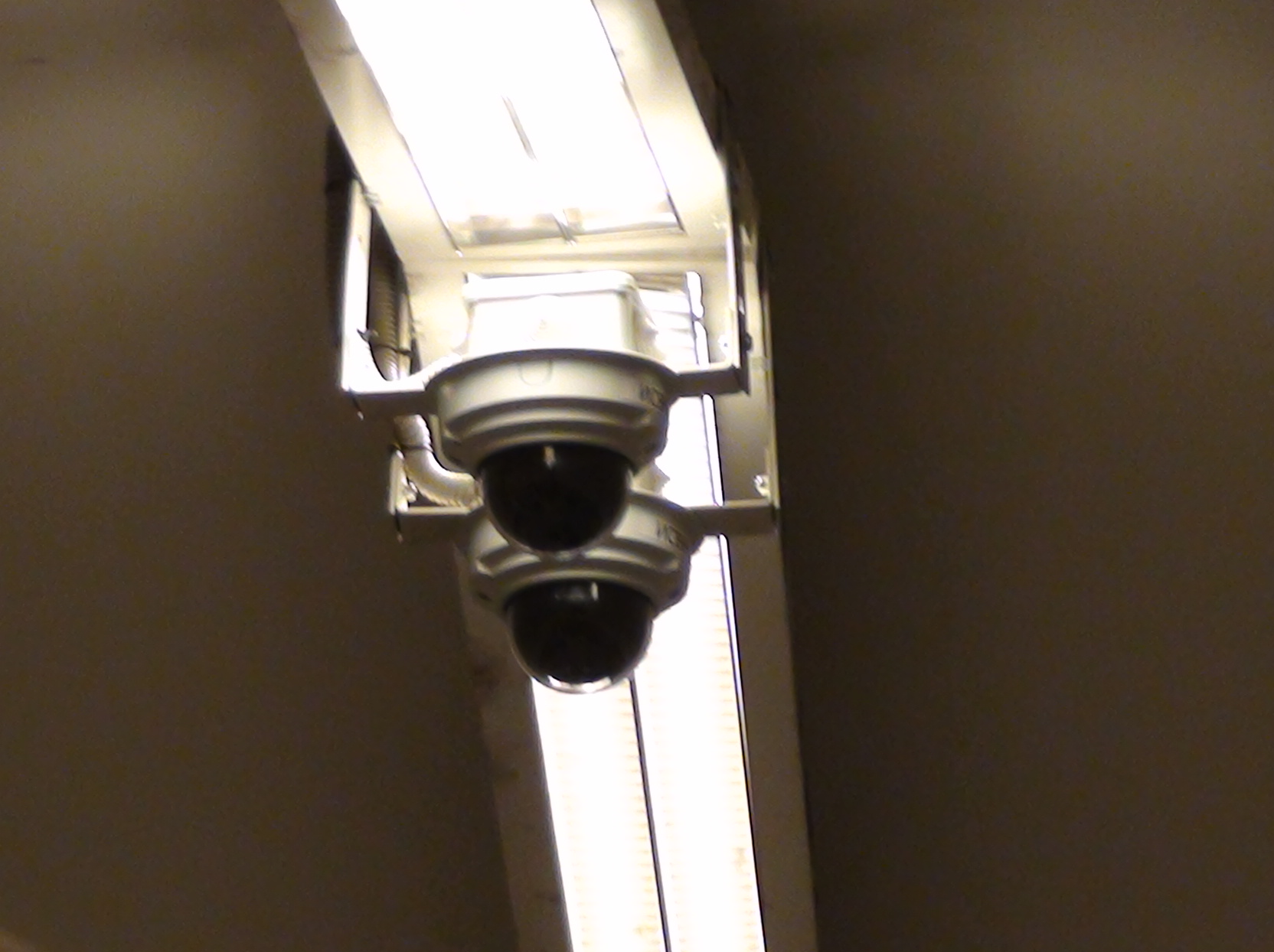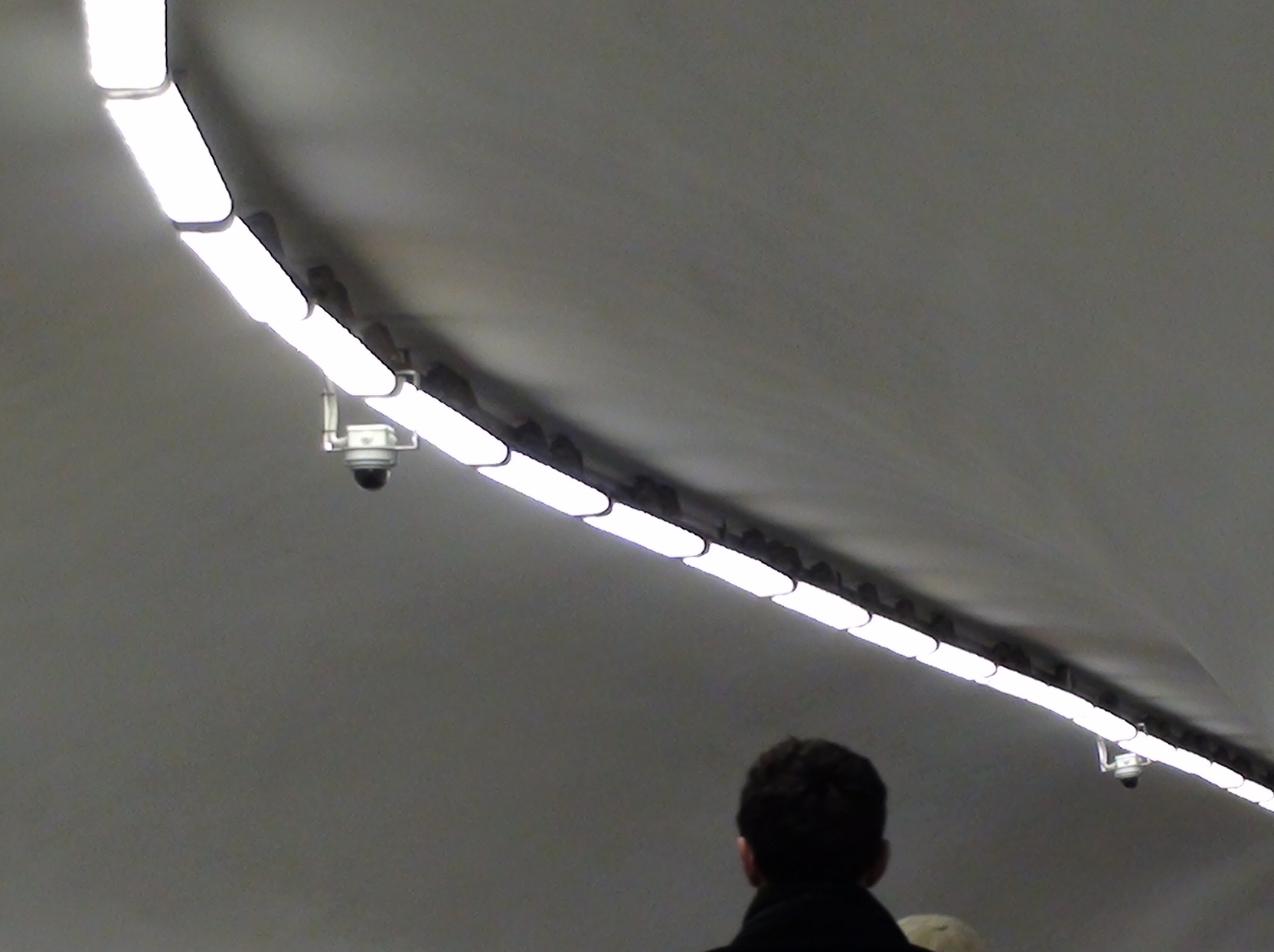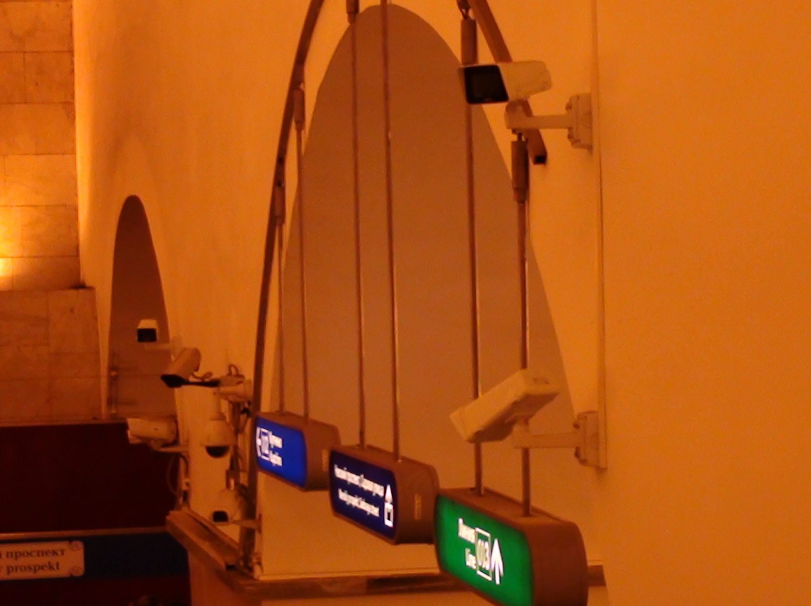 Также, прибавилось камер у входа на эскалатор со стороны Грибоедова. Квадратных камер неделю назад ещё не было. Ещё одна слева не попала в кадр. Чем дальше, тем страшнее