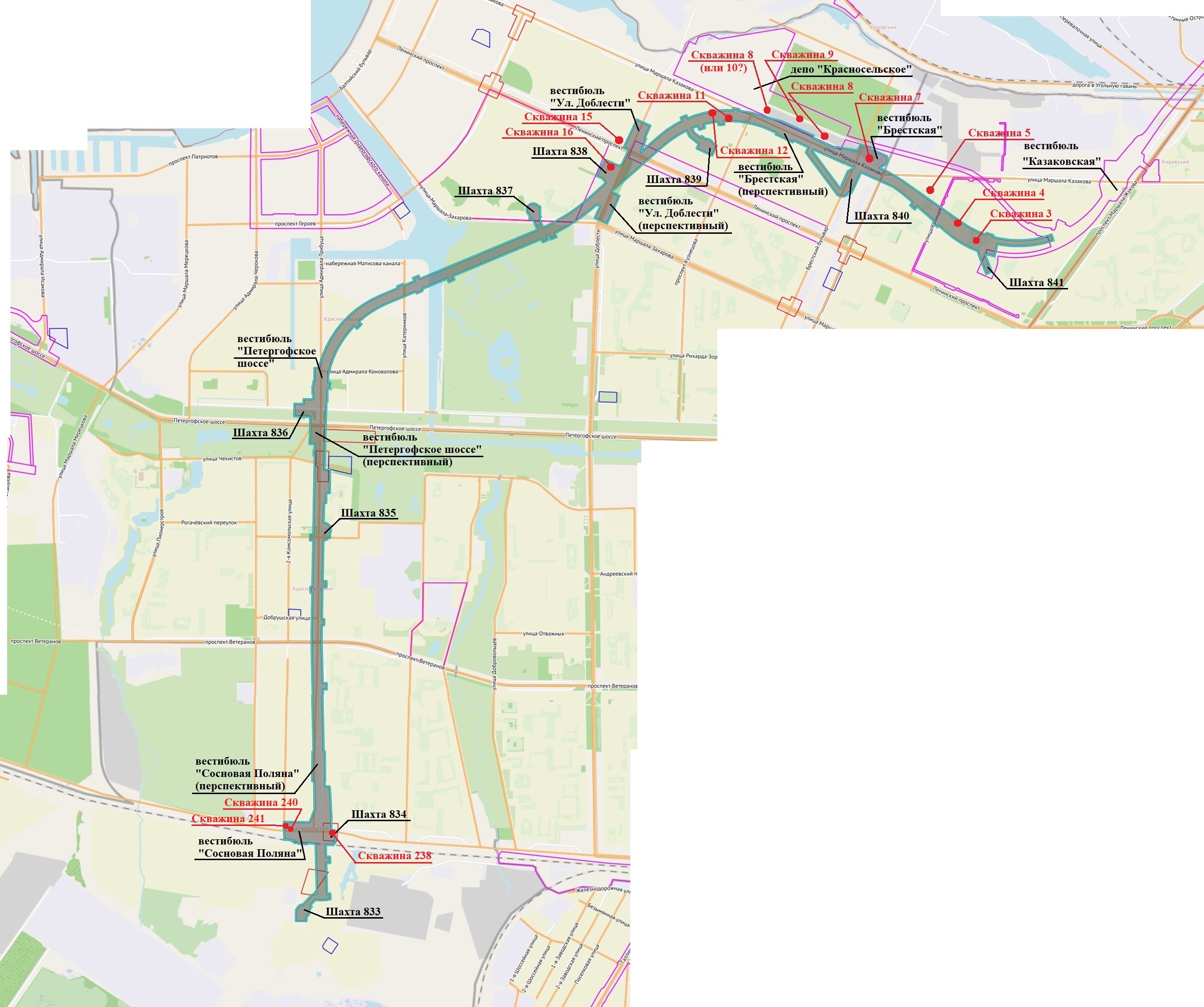 АО "Метрогипротранс" продолжает проектирование участка Красносельско-Калининской линии метрополитена от станции "Казаковская" до станции "Сосновая поляна".