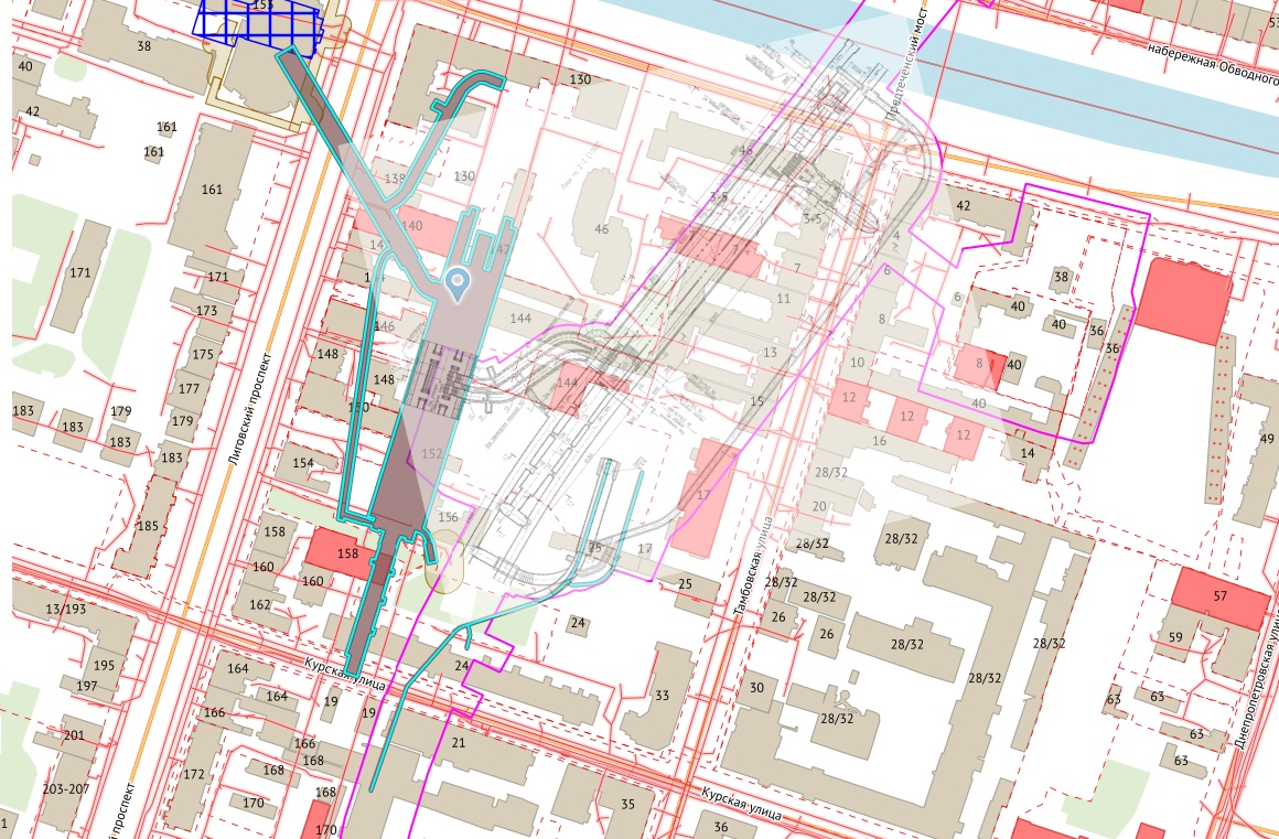 Совместил схему станции Обводный канал", схему проекта планировки территории ККЛ с сайта РГИС с чертежом пересадочного узла: