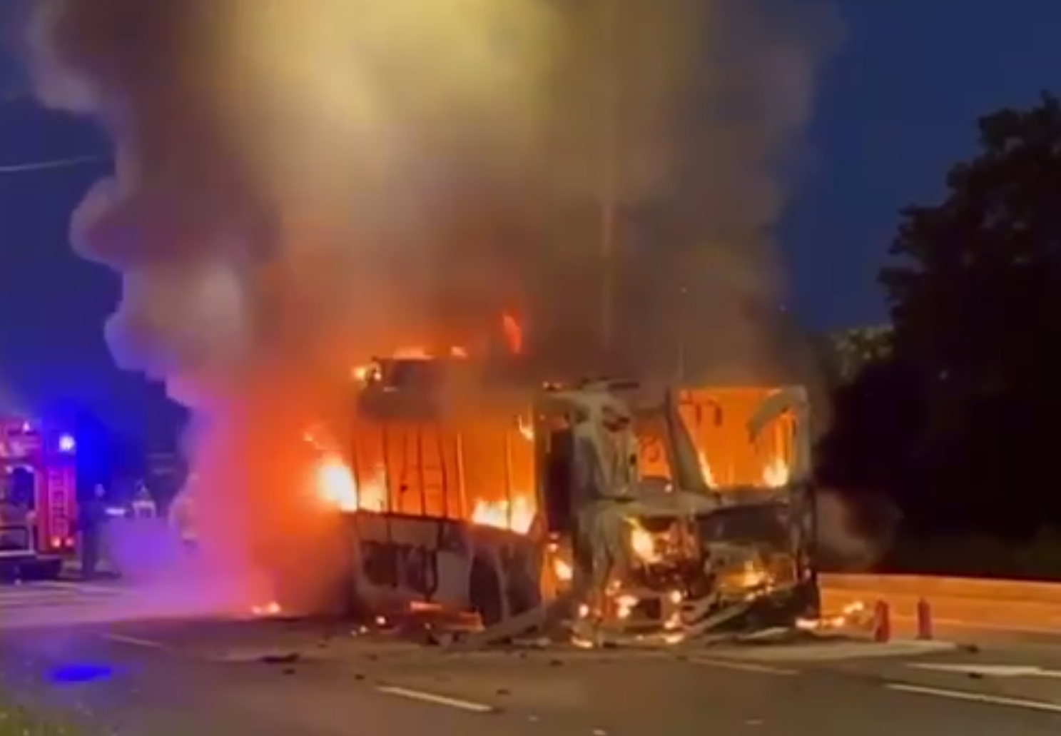 10 июля на Колпинском шоссе ночью сгорел лазурный автобус следовавший в парк.