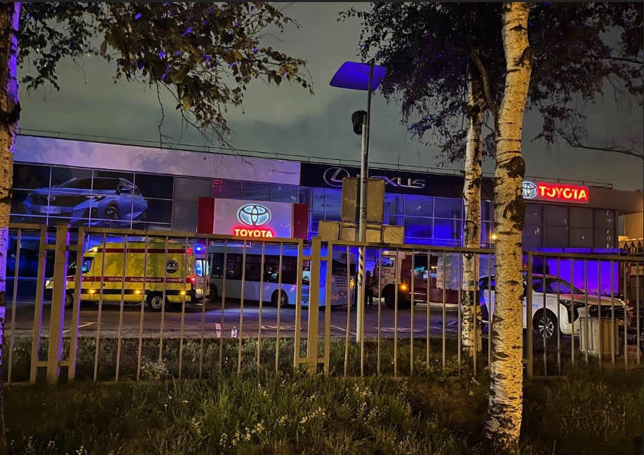 Ночью следовавший в парк автобус Третьего парка, на Приморском шоссе снёс столб и чуть не заехал в автосалон.