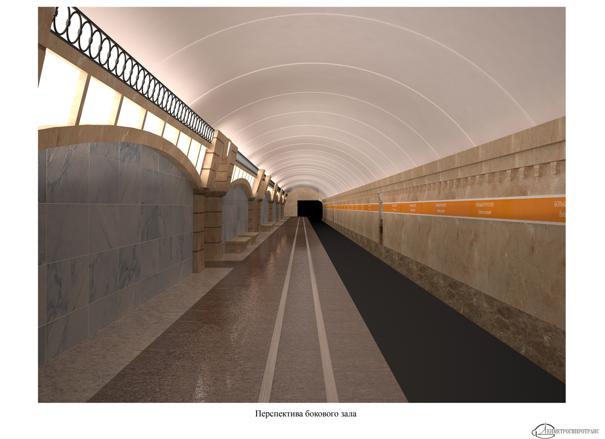 Тендер по проектированию трех других станций – «Большой проспект», «Шкиперская» и «Морской фасад» прошел осенью 2011 года, его также выиграл «Ленметрогипротранс». В распоряжении нашего издания оказались архитектурные эскизы этих трех станций. Учитывая, что проектно-сметная документация еще не прошла экспертизу, определенные детали могут поменяться, но общая концепция, скорее всего, сохранится.