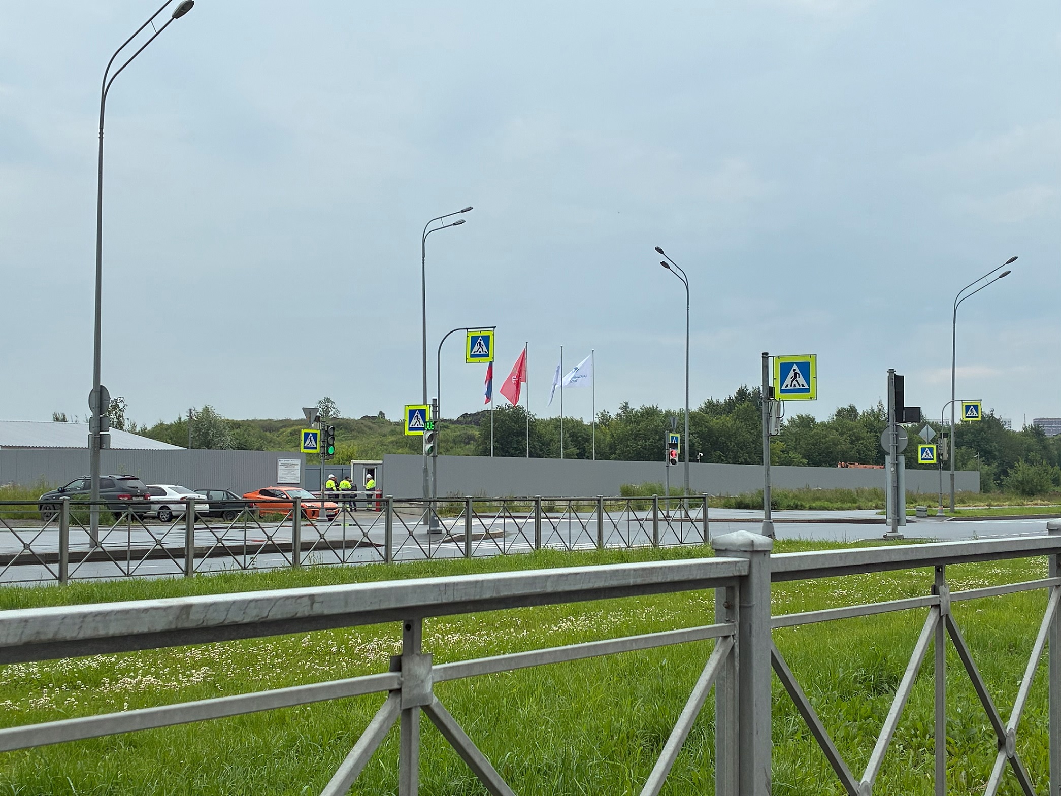 Сегодняшнее утро (7:45), рабочие у ворот