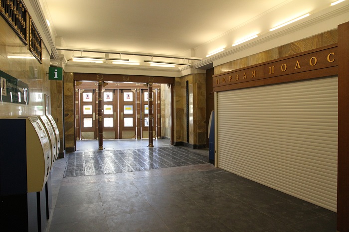 Для обеспечения современных требований противопожарной безопасности стены и пол вестибюля отделывались негорючими материалами, установлены противопожарные двери.